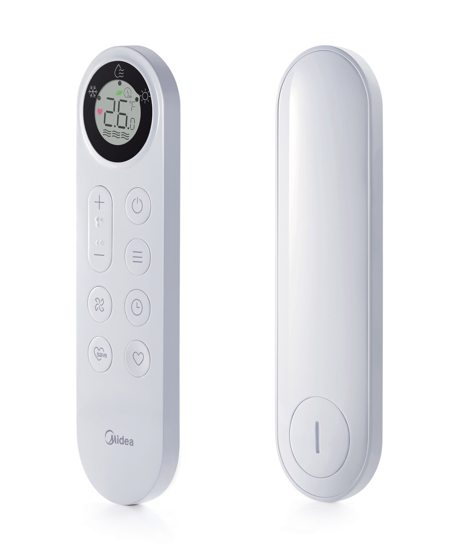 This is a simple mini wireless remote control concept for air- conditioning. The cooling, heating and dehumidification modes are indicated in water droplets, which adds to the appeal of using it. When the user raises the temperature above 26°C, a green leaf appears above the temperature display on the screen, indicating energy conservation and contribution to environmental protection.