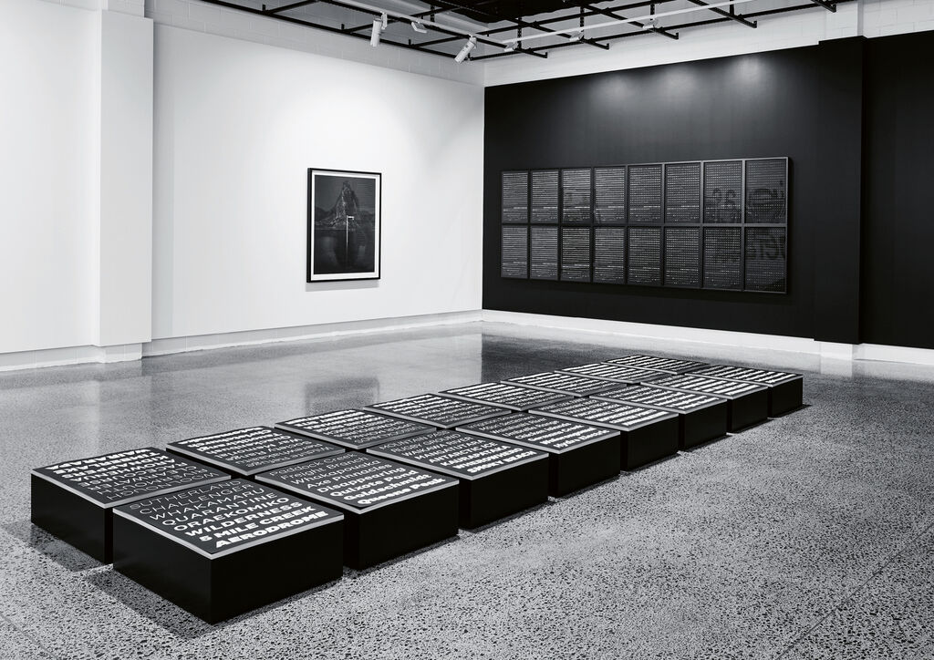 Focusing on National 2, a typeface by Klim Type Foundry based in Wellington, New Zealand, this exhibition deals with the question of how identities are formed through symbols, imagery, beliefs and language. The exhibition interrogates the relationship between type and place, text and landscape, and thus ultimately identity. Across the exhibition title, a supergraphic was rendered along the gallery walls. The concept is complemented by 16 large-scale atmospheric photos with matching contours and shared horizons. Together they trace a fictitious visual journey from “the Valley of Darkness, up Mount Inaccessible to Farewell Spit”.