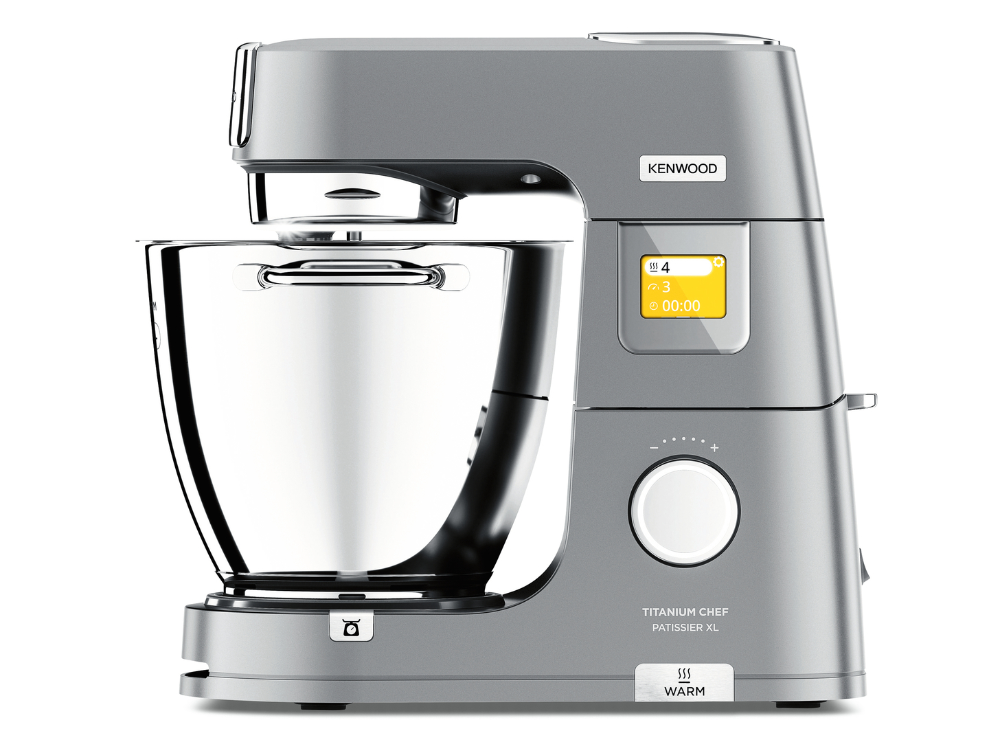 The Titanium Chef Patissier XL was designed to assist users with the preparation of complex recipes. A particular technical feature is the stainless steel mixing bowl that can be heated to different temperatures and enables the realisation of sophisticated baking processes. All ingredients are weighed directly in the bowl or in the accessories thanks to the integrated scale. The functions as well as a selection of preset programs are simply entered via a touchscreen in combination with a rotary knob.