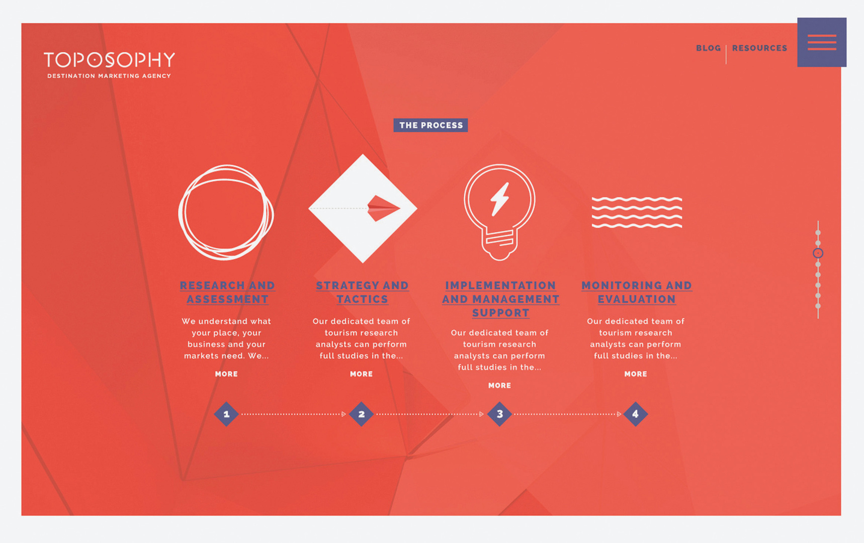 As one of Greece’s leading destination marketing agencies with local as well as international clients, Toposophy’s dynamic character and philosophy is depicted throughout its brand identity. Minimal lines, urban typography, large visual elements and custom designed, animated icons take centre stage on the new fully responsive website, giving users all the necessary information in an elegant yet exciting way. Smooth, vertical parallax scrolling along with animated text boxes and a rotating image slider in the “About Us” section create a unique user experience, reflecting the agency’s main motto “We like doing things differently”.