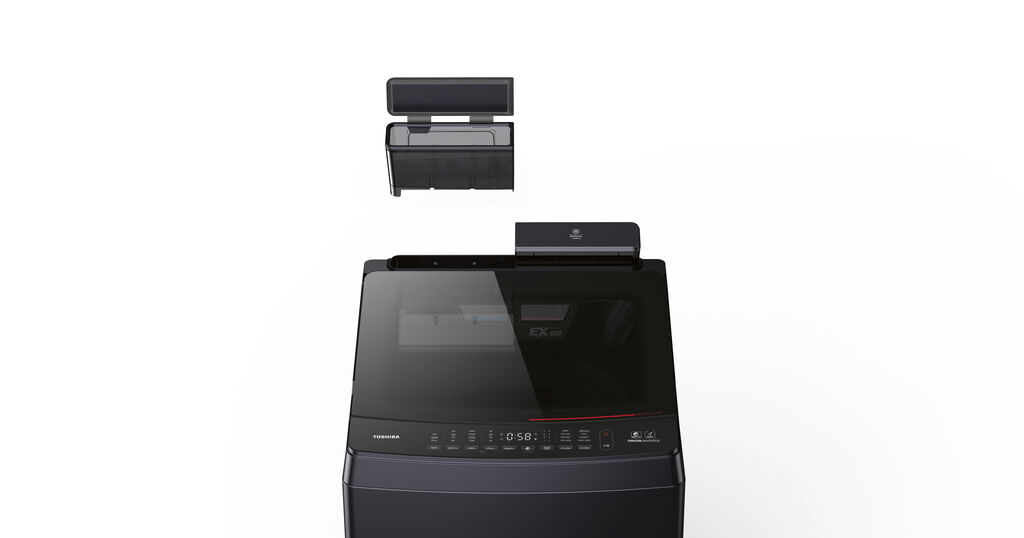 Designed for ease of use, the Toshiba T16 is a top-loading washing machine. The detergent and fabric softener dispensers are removable and easy to clean. The EX-DOT function allows precise dosing of detergents. These are distributed in the water by Ultra-Fine Bubble (UFB) nozzles. Programmes are selected using touch sensors on the clear control panel, which also displays the programme status. The display is flush with the semi-transparent cover. "The anthracite housing is elegantly accentuated with matt and glossy elements. Thanks to the use of high-quality materials, the machine can also be placed in a highly visible position in the bathroom or kitchen," the judges commented.