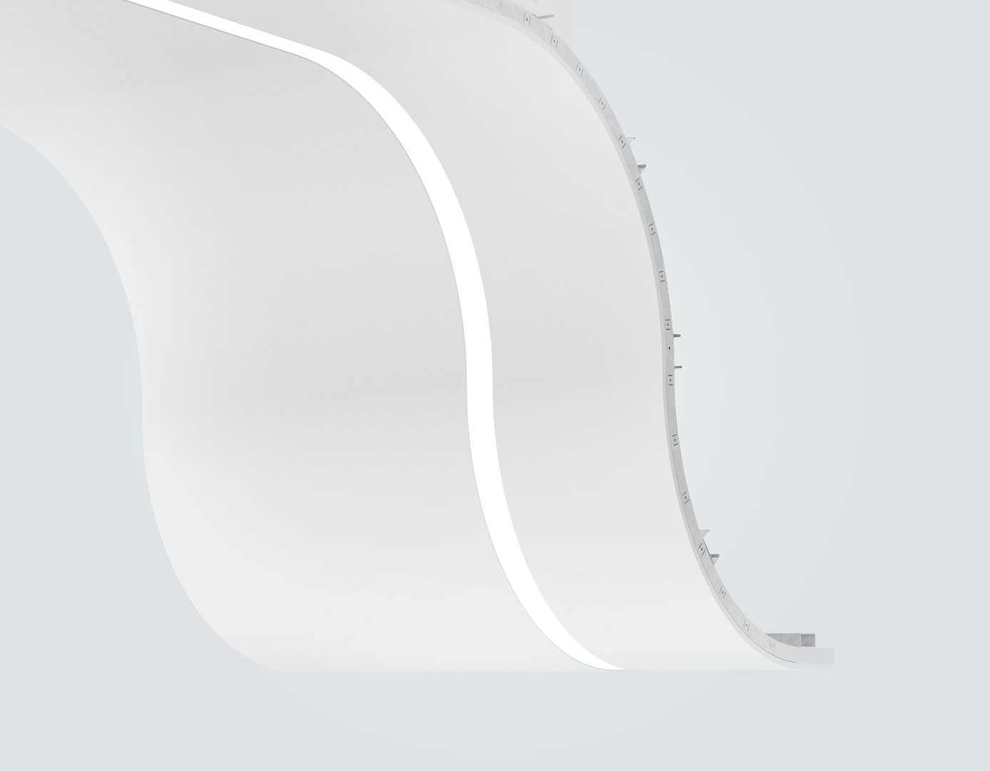 Tracker was developed as an innovative solution for illuminating contemporary architecture. The linear lighting system is thus easy to build into ceilings and walls with fluid shapes. Inspired by the extremely mobile spines of some reptiles, the result is a structure that can be taken into different directions and that flexibly adapts to a variety of wall shapes. The system can be expanded seamlessly and is suitable for illuminating larger areas.