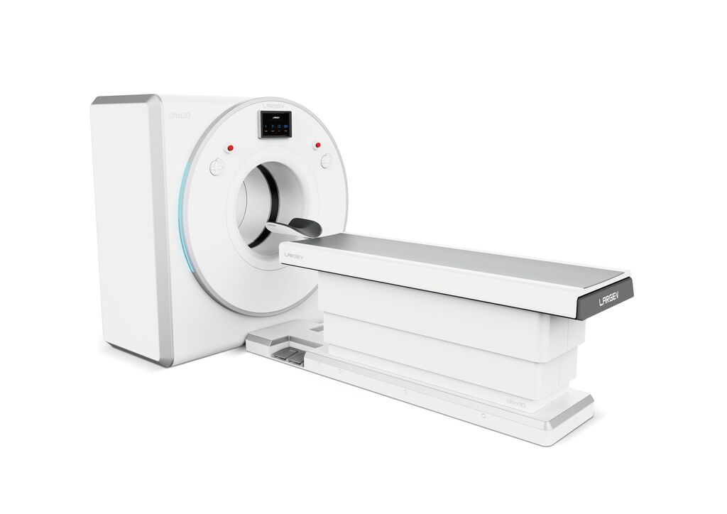 Specifically developed for the requirements of ear, nose and throat diagnostics, the distinctive technical feature of this cone beam computed tomograph (CBCT) is its dual imaging system. This allows scanning in a wide field area and scanning in a dedicated small field area with higher resolution. The indirect lighting concept helps the patient to relax during the examination. The generous surface size of the table additionally offers the possibility of assuming a comfortable position during the examination and conveys the security of not being able to fall off.