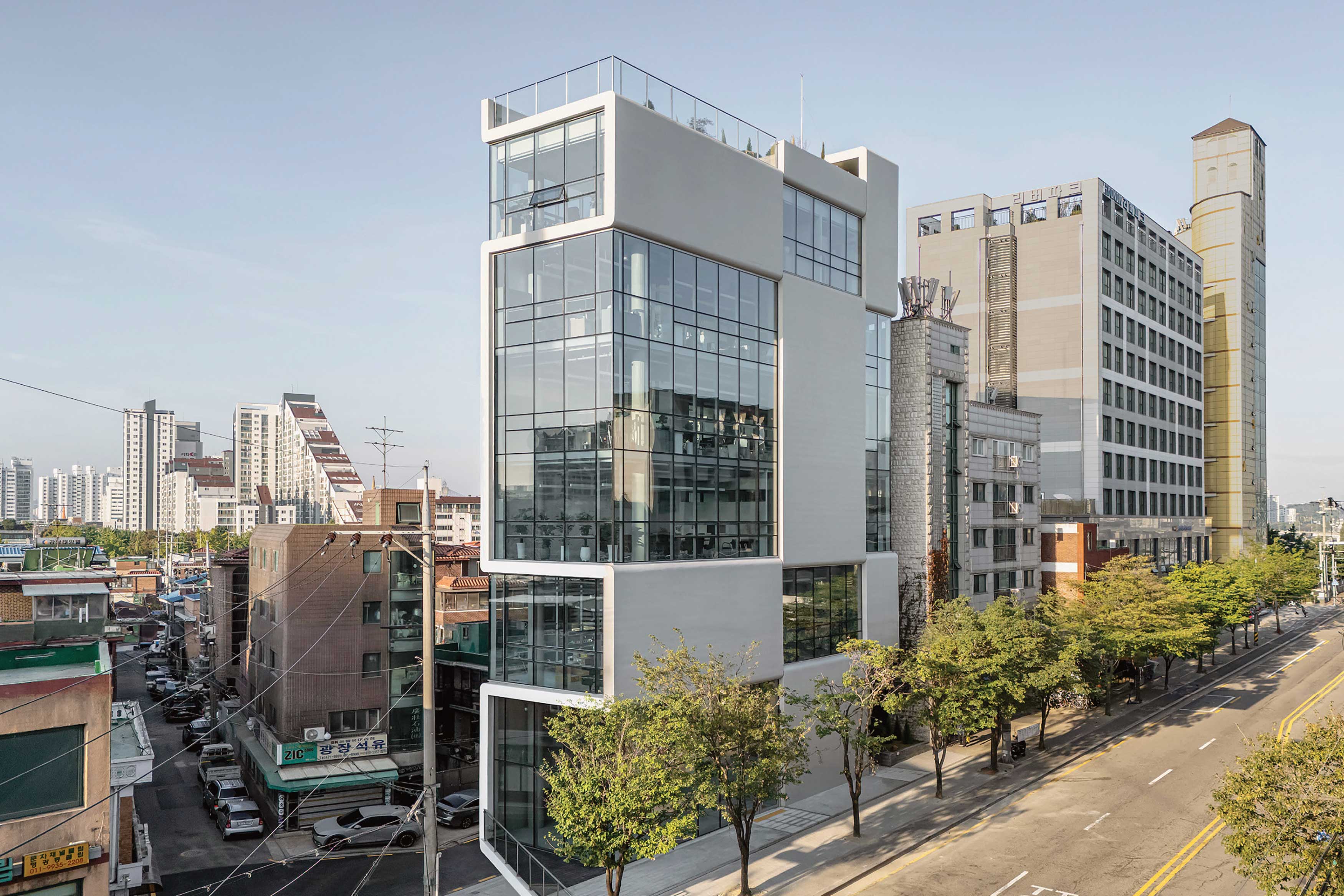 KN Global Headquarters is an office building for a leading firm that specialises in Tunnel Boring Machine technology. The building's architecture makes a conceptual reference to tunnel construction, using exposed concrete as the structural and aesthetic framework. This 'concrete lining' (450mm thick) extends through the floors, walls, and ceilings, creating a continuous spatial experience that resembles a tunnel's layered depth.