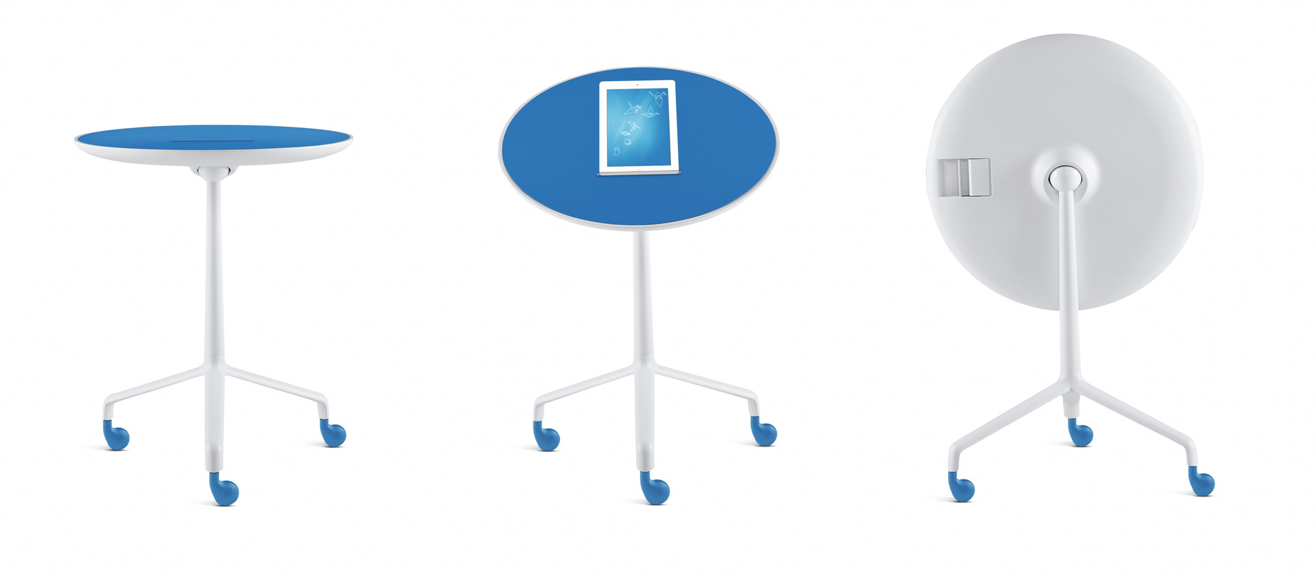 Use Me is a multi-purpose table system with a minimalist design, which is available with or without castors or sliders as well as in different colours and finishes. Suitable for a wide variety of applications, the version with pad system offers discreet storage options, which are automatically activated when inclining the table top, permitting the use and placement of tablets, smartphones or books on the desktop. The table top tilts up to 30 degrees to support an ergonomically correct sitting position by preventing the typical forward-leaning posture.