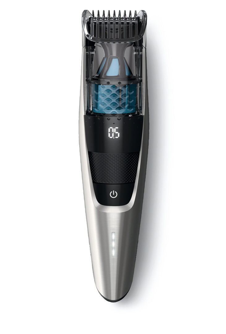 An innovative vacuum technology sucks the hair of the beard up during the cutting process. This allows precise and residue-free operation. A transparent casing provides information on movable components and airflow. The desired beard length is easy to adjust, and the comb adapts well to facial contours. The blades retain their sharpness and do not have to be oiled.