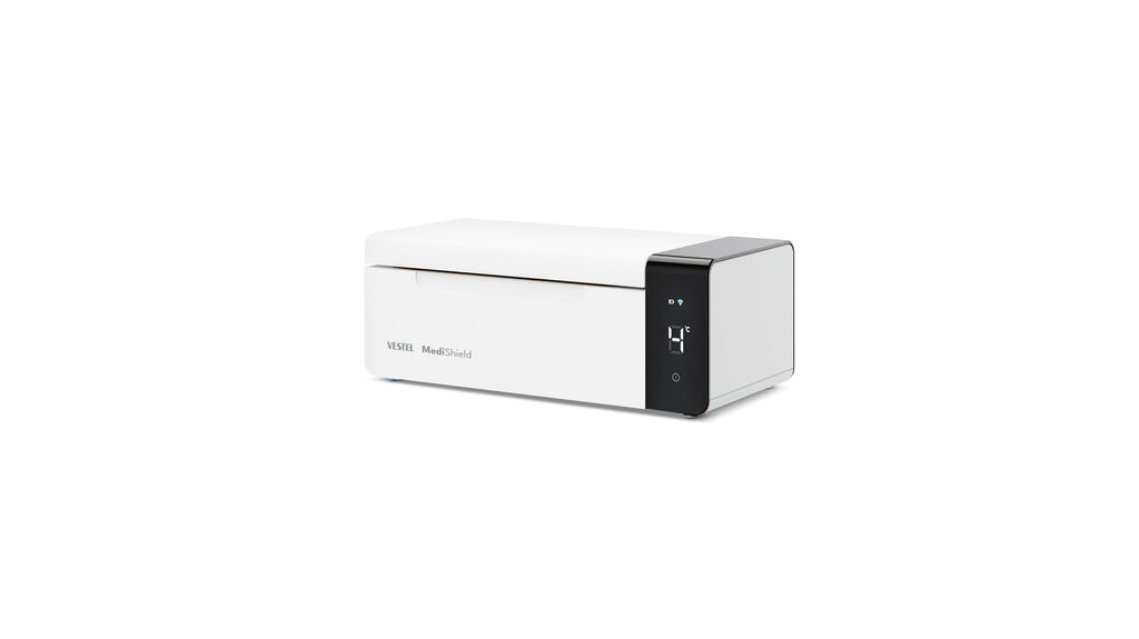 The portable Vestel MediShield Refrigerator storage box has been specially designed for storing insulin and similar injectable medications in the Vestel French Door refrigerator. With an energy-efficient active-cooling system, it maintains a constant temperature between two and eight degrees Celsius and protects the contents even in the event of a power cut, or outside of the refrigerator. Up to four pens can be safely stored in the inner compartment of the minimalist device.