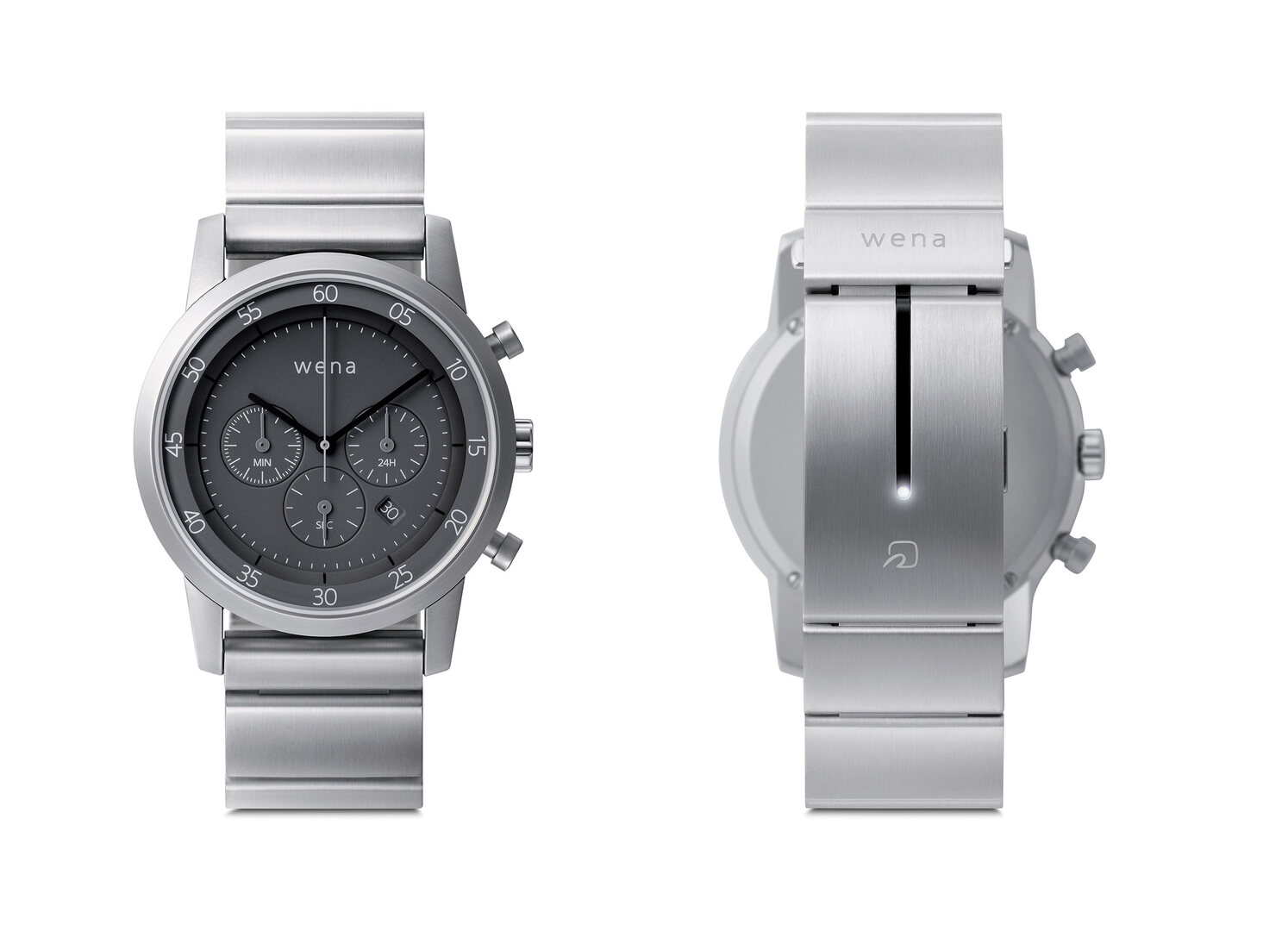The Wena Wrist smartwatch is a reminiscence of the time-honoured style of analogue wristwatches. It combines the classic design of a wristwatch with three carefully selected functions for daily life: a mobile wallet for contactless payment, notification of incoming calls, emails and SMS as well as activity logs processing data provided by pedometer and calorie meter. The technology is accommodated in the watchstrap so that the actual housing could be held relatively flat by comparison.
