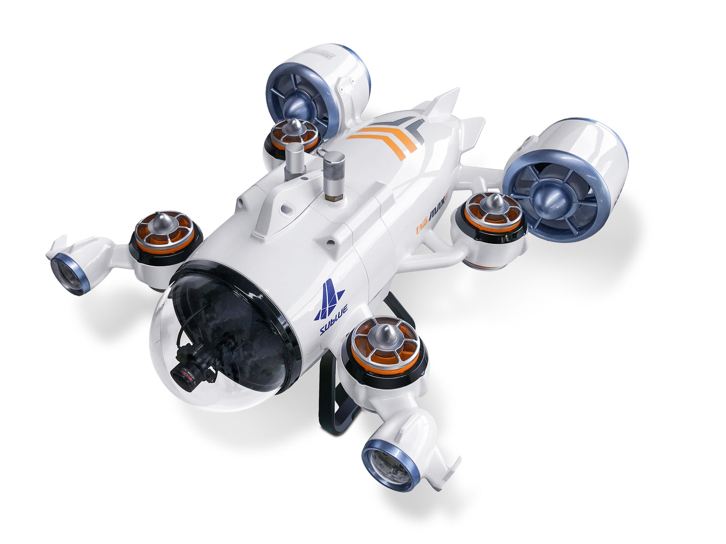 WhiteShark Max is a remote-controlled submarine vehicle which can dive up to 100 metres in depth. It has a solid driving unit and a nine-axis motion compensation system that allows full manoeuvrability, and it can automatically track sonar beacons through image recognition algorithms. The special material used for its construction is called “Schulmann PC+GF30”, which reduces the risk of disturbing sensitive marine animals, such as sharks. The vehicle is suitable for underwater inspection, cleaning contaminated areas or supporting salvage and rescue initiatives.