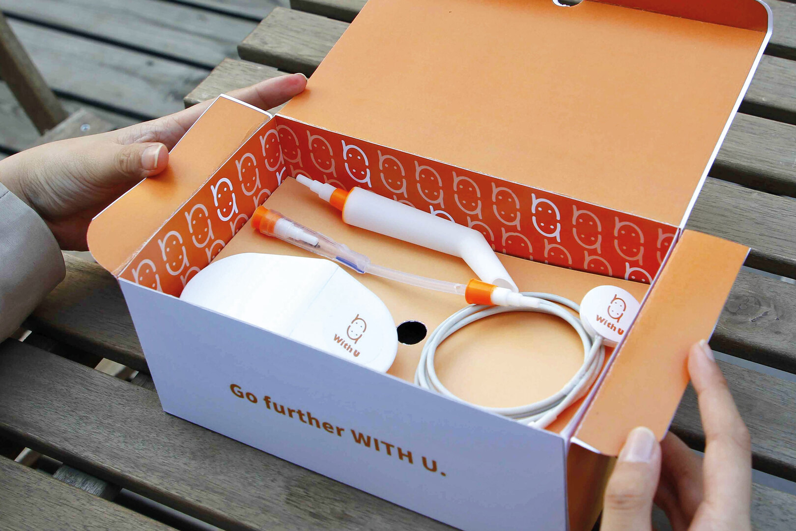 Catheters are helpful to patients with neurogenic bladder (an inability to pass urine), but its long-term use can result in irreversible disuse atrophy of the bladder and a reliance on catheters in the future. As such, With U is a smart urine-control device designed to prevent bladder shrinkage and to rebuild urinary reflex (micturition reflex) for patients in recovery. The system is strapped to the thigh and comprises a smart controller that connects the catheter to the redesigned drainage bags (stage 1) and drainage tubes (stage 2).