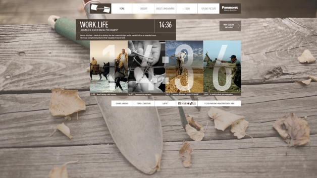 Every year the Panasonic LUMIX Award presents digital images by amateurs and semi-professional photographers. To visualise the theme of the 2010 competition “Work.Life” with contributions about work around the world, the design puts emphasis on the central element of “time”. The homepage and the gallery automatically adapt to the current time in a subtle manner, the submissions are presented according to the time they were made and thereby reflect the different facets of a 24-hour workday in a mosaic. Warm earthly tones were used to symbolise the themes of work and trade.