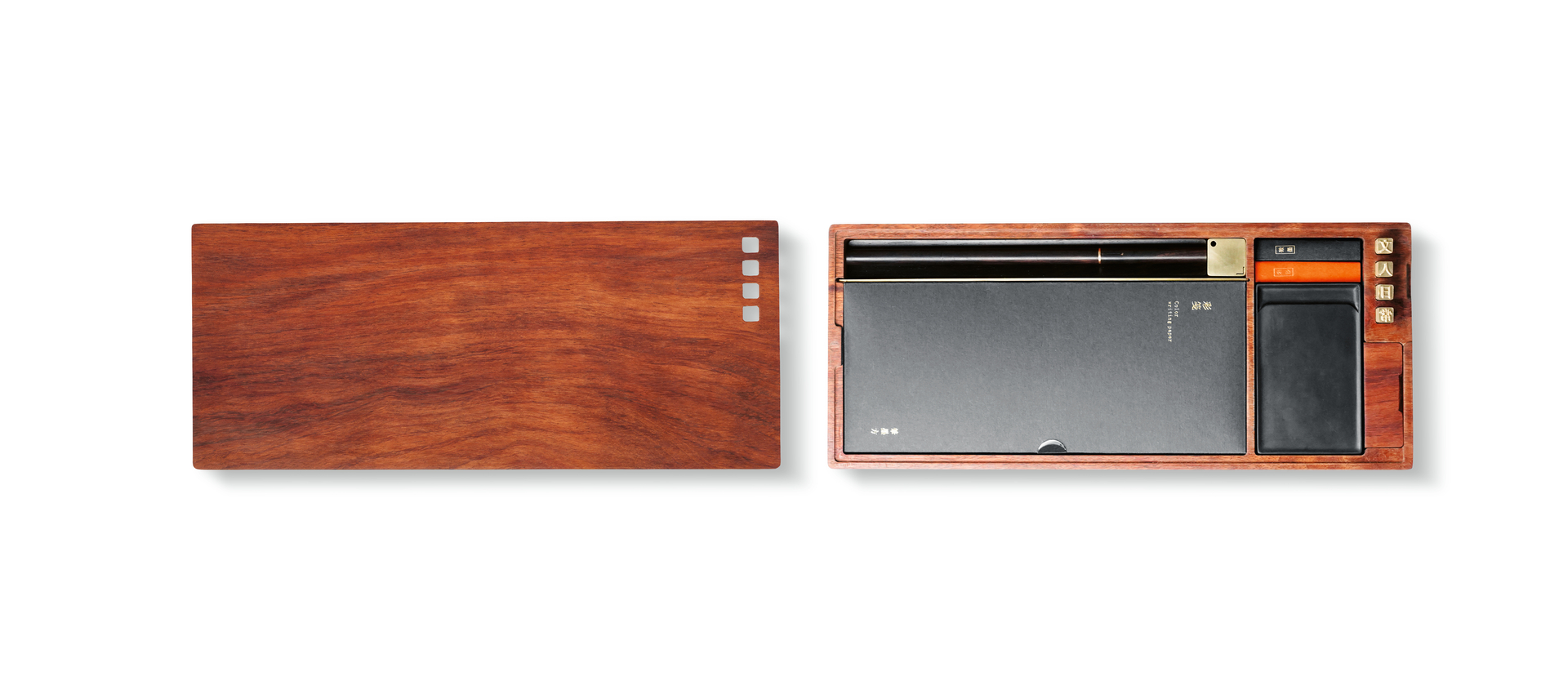 Writing and painting with brushes is an important part of Chinese cultural heritage. This writing set comprises tools to make contemporary calligraphy easier and thus encourage it. To achieve this, the design appeals to modern users whilst still being guided by traditional style. A solid-wooden box contains, among other things, a writing brush, ink, paper and an inkstone. In addition, the box includes print types than can be customised on demand for use as a seal.