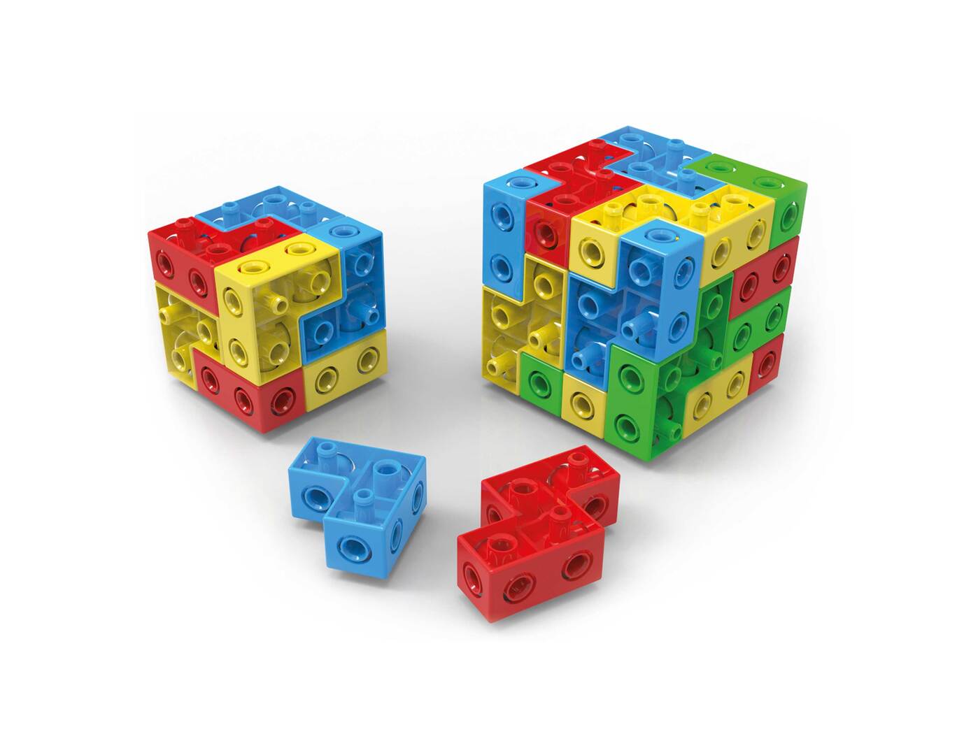 The 3D Construction toy-brick’s ability to interface with a sturdy snap-fit on all six sides in 3D space lends to robust assemblies of creative 3D forms. This means it can be used to build any 3D toy-structures of the child’s imagination, even those that are difficult to build with conventional 2D toy-bricks in the market today. The components of the 3D Jigsaw Puzzles have a similar interlocking attribute, but poses a different and unique challenge: To assemble a cube out of 9, 16, 25 or similarly shaped interlocking components. The bigger the puzzle, the bigger the problem-solving challenge it presents. The seeming sameness of all its components poses an interesting twist/challenge to the end-user. Each cube can be assembled differently using the same identical components, thus leading to many possible solutions.