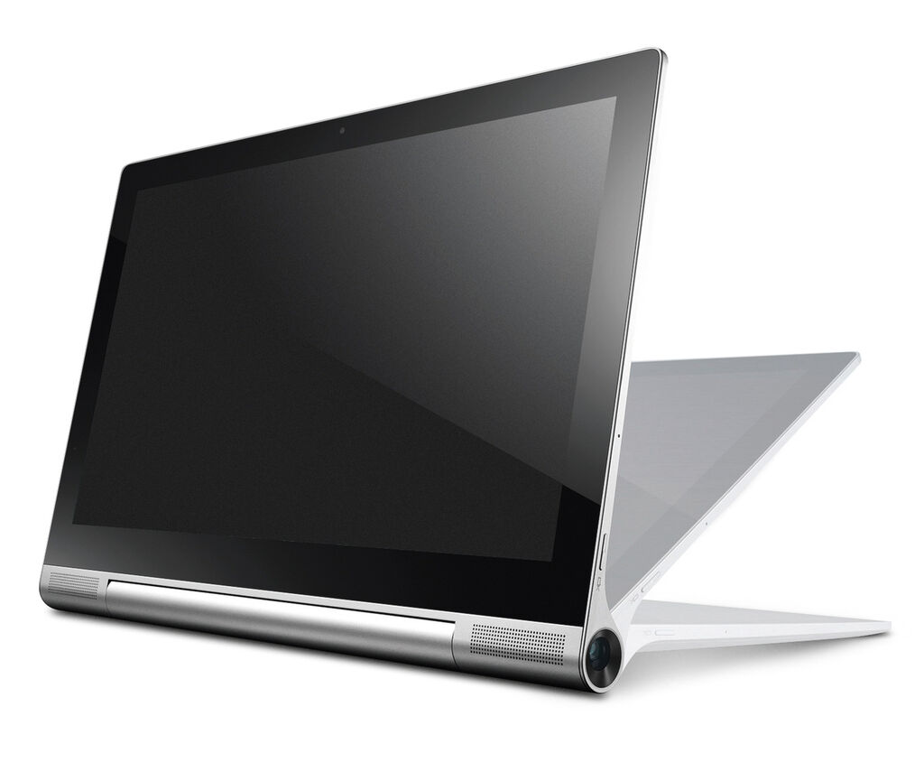 The 13” Yoga II Pro tablet can be adjusted to any desired angle with the integrated stand: positioned upright, it serves as screen, such as for watching videos. Flat on the table or slightly angled, the touchscreen is convenient to use. The stand also functions as a wall mount, enabling the tablet to be hung anywhere for watching videos or listening to music.