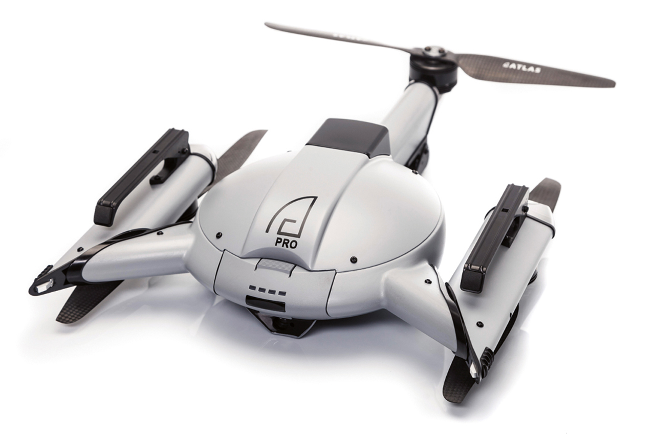 Atlas Pro, manufactured by Atlas Dynamics and designed by Ivan Tolchinsky, is an easy to use aircraft, suitable for defence, security and industrial inspection. With 55 minutes of flight time, a 50 km range, a speed of up to 120 km/h and reliable weather resistance, the Red Dot winner is a powerful, small multi-rotor drone. With three engines and a rear pivoting servo, an aerodynamic profile that creates lift and a lightweight full carbon fibre hull, it is especially efficient in terms of flight time, speed and manoeuvrability.