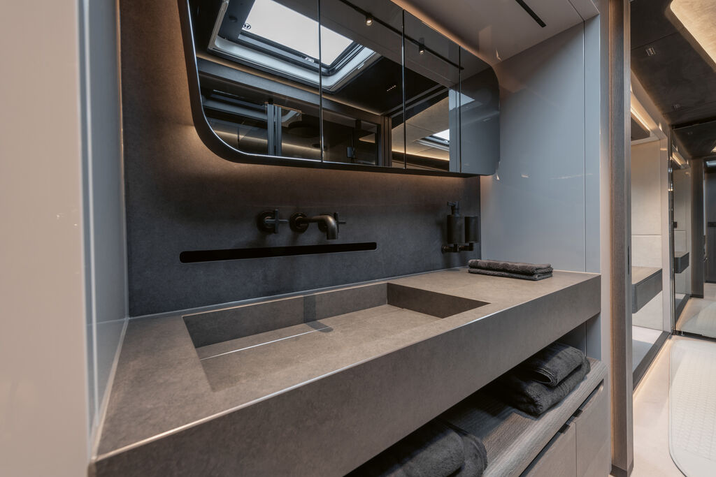 The most important thing is that when we talk about best-in-class performance, we mean far more than just a powerful drive. Performance is a mindset. A world of experience. It’s about how a product behaves and how it reacts to its environment. It’s about the ability to seamlessly combine performance, elegance, style and design in a way that activates the senses and leaves an extraordinary, unforgettable impression. In this case, it was clear from the outset that it was to be a BRABUS motorhome in every respect. This meant that the idea of performance had to go far beyond the engine compartment – it had to characterise the entire experience down to the smallest detail.