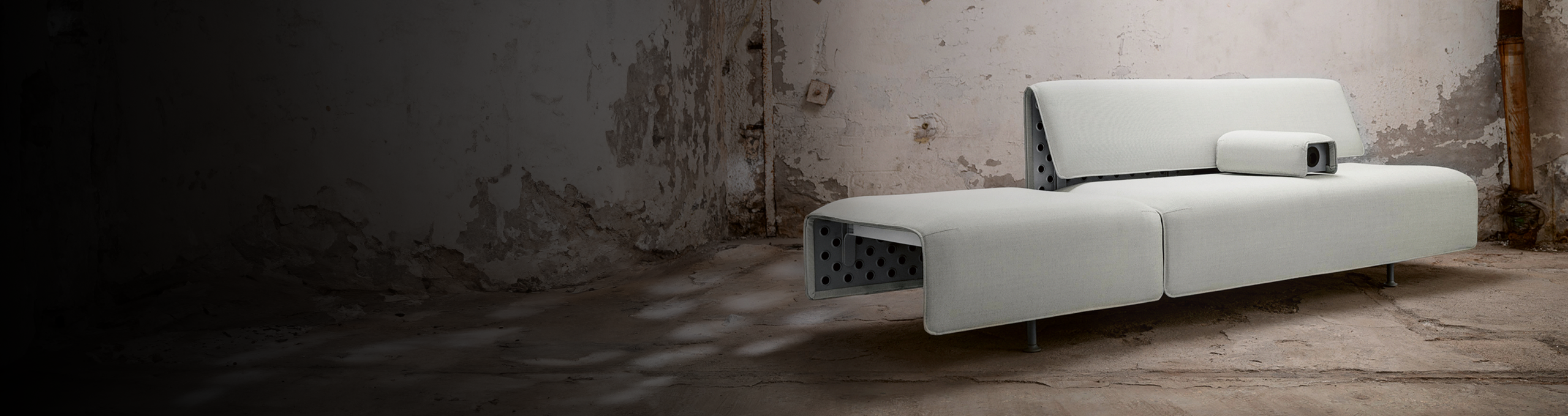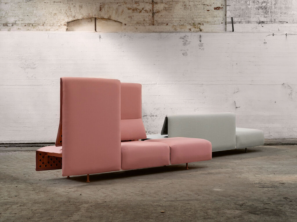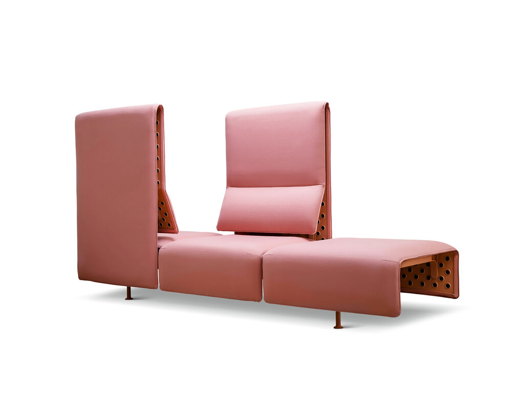 I am completely in love with the die-cast parts, which were conceived with exceptional functional clarity for the backrest and armrests. In general, though, meticulous care and dedication went into so many details. Six different variants – with various punching depths, designs and dimensions – were tested for the aluminium structure before a decision was made. The upholstery fastening system, which uses a universal clip and requires no staples or glue, is another impressive feature. And last but not least, the legs are set back under the seat – a small detail that gives the sofa extra stability and a light, floating appearance.