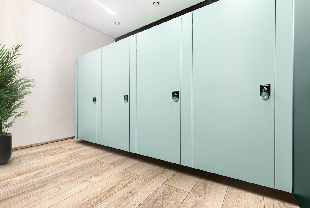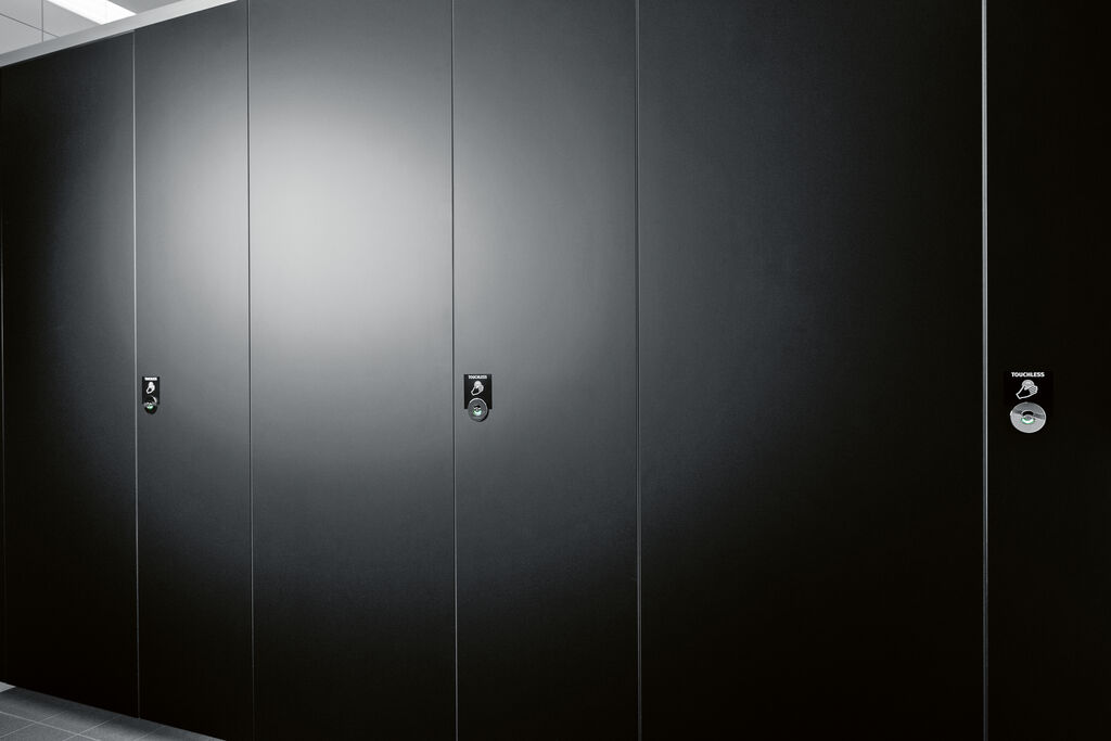 Selection of materials is central to the overall hygiene concept of PRIMO Kn Touchless, and it also beautifully complements the design. We opted for a robust 42 mm HPL composite. HPL is water-resistant, so it doesn’t provide a breeding ground for bacteria or mould. It is also easy to clean and disinfect without being damaged by the cleaners or disinfectants. Other advantages are this material’s high mechanical strength and resilience because it provides some degree of protection against deliberate damage in public access areas.