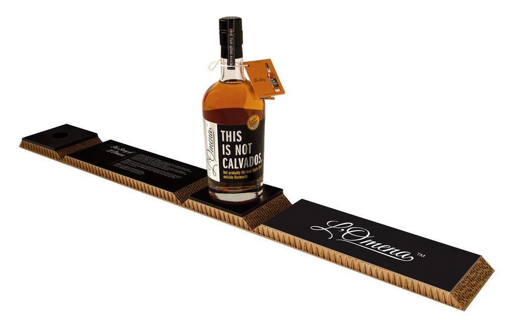 “This Is Not Calvados” is a premium product targeted at Calvados enthusiasts. It is made by a small Finnish distillery using only biodynamic, naturally grown apples, and no artificial additives. Since the name "Calvados" can only be used by cider brandies from the area of origin in Normandy, France, the statement on the label "This Is Not Calvados" communicates directly to what it is. The packaging design of the bottle distinguishes the Finnish product from its French competitors and attracts attention. The design aims to create a natural and hand-made look and feel. The light but strong package, made of environmentally friendly cardboard, also protects the product during transportation. In addition, it is stackable and, thus, can be turned into nice display sets in tax-free shops and other retail stores. The bottle’s masculine form and the straightforward design of its label, featuring grotesque Franklin Gothic lettering, lend it a pure and powerful image.