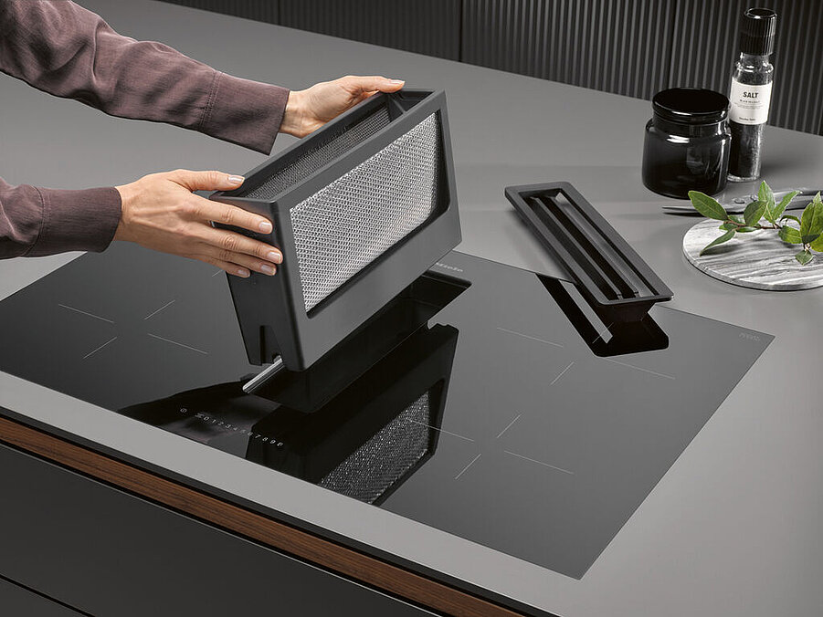 Miele has also succeeded in harmonising design and functionality for domestic use. The full-surface induction hob from the KM 7897 Diamond series impressed the jury with its high-quality appearance and its absence of cooking zones: ”When the frameless hob is not in use, the controls are invisible. This creates a calm, homogeneous appearance”.