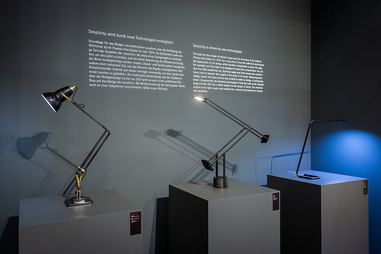 The progression from the light bulb to the halogen bulb and then the LED also had a visible impact on the design of lamps. For example, a light bulb required a lampshade to direct the light. In addition, the heat produced always needed to be taken into account. Furthermore, standing lamps and table lamps needed a heavy base to balance the weight of the head of the lamp.