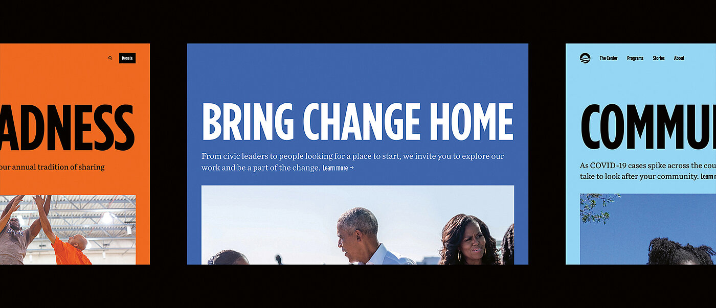 Since its founding in 2013, the design and technology agency Work & Co has created digital products for clients like Apple, IKEA, Aesop, Virgin America, Nike, Mellon Foundation and PGA TOUR. In 2024, the agency became part of the creative group Accenture Song. Its work focuses on user-centred design, whether for websites, apps or AI applications. In 2023, the Obama Foundation approached Work & Co with a complex challenge. Established by Michelle and Barack Obama, the foundation sees itself as a catalyst for social change, aiming to inspire people around the world through its initiatives. With numerous events, networking formats and educational programmes, the foundation reaches a broad audience – bringing its credo “Hope to Action” to life. With the Obama Presidential Center, the foundation is currently turning a vision into reality – a large campus that includes a museum, library, event rooms and sports facilities. “To support this, we developed a long-term roadmap for the foundation’s digital products and simultaneously redesigned its website. The goal was to reflect the new brand, while meeting the diverse future needs of visitors,” explains Parker Sapp, Product Management Leader at Work & Co. Through consistent user guidance, clear colour coding and a well-defined grid, the designteam succeeded in engendering an accessible structure that ensures intuitive orientation.