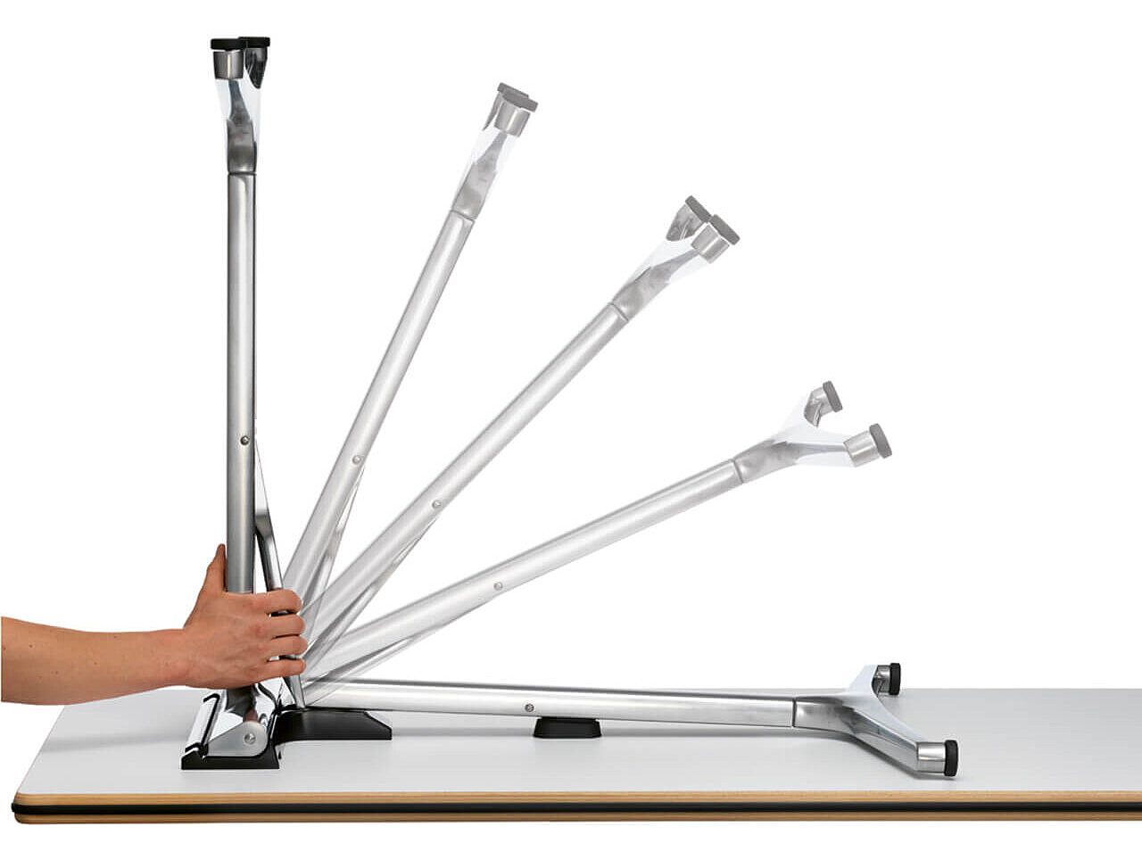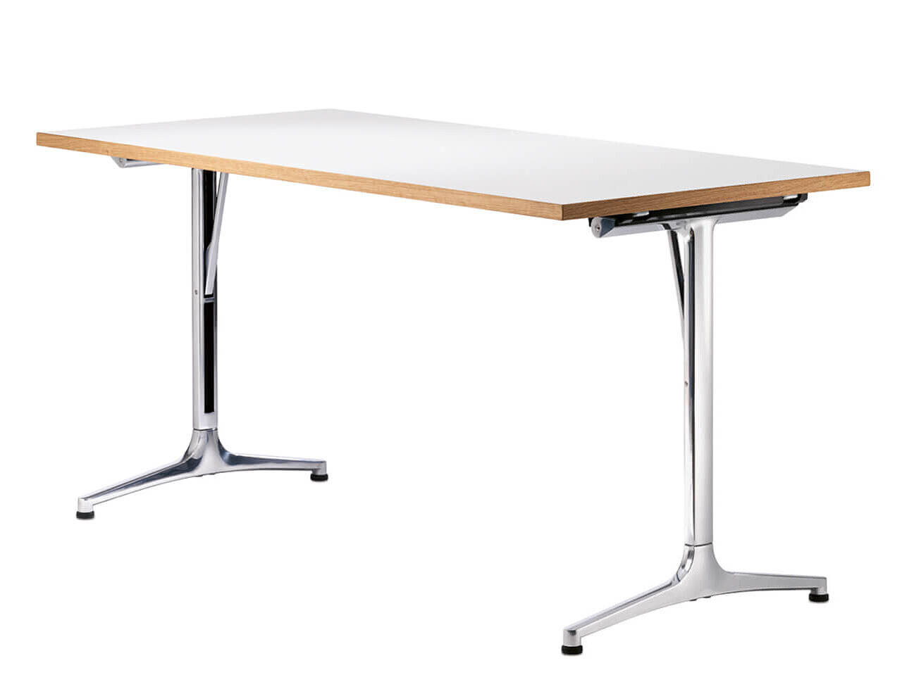 The folding conference table “mAx”, manufactured by Wilkhahn, Wilkening+Hahne and designed by Störiko Product Design, provides offices with a universal solution. Its elegant T-shaped pedestal is made entirely of die-cast aluminium and contains an ingenious, patent mechanism. This makes it easy to operate the table with one hand and offers a self-stabilising solution and integrated interconnection of the insert panels with creating a high-quality look. The pedestal is available in three sizes, allowing for a variety of formats and shapes. This makes the table, which was awarded a Red Dot, suitable for use in seminars, flexible co-working spaces or executive workshops.