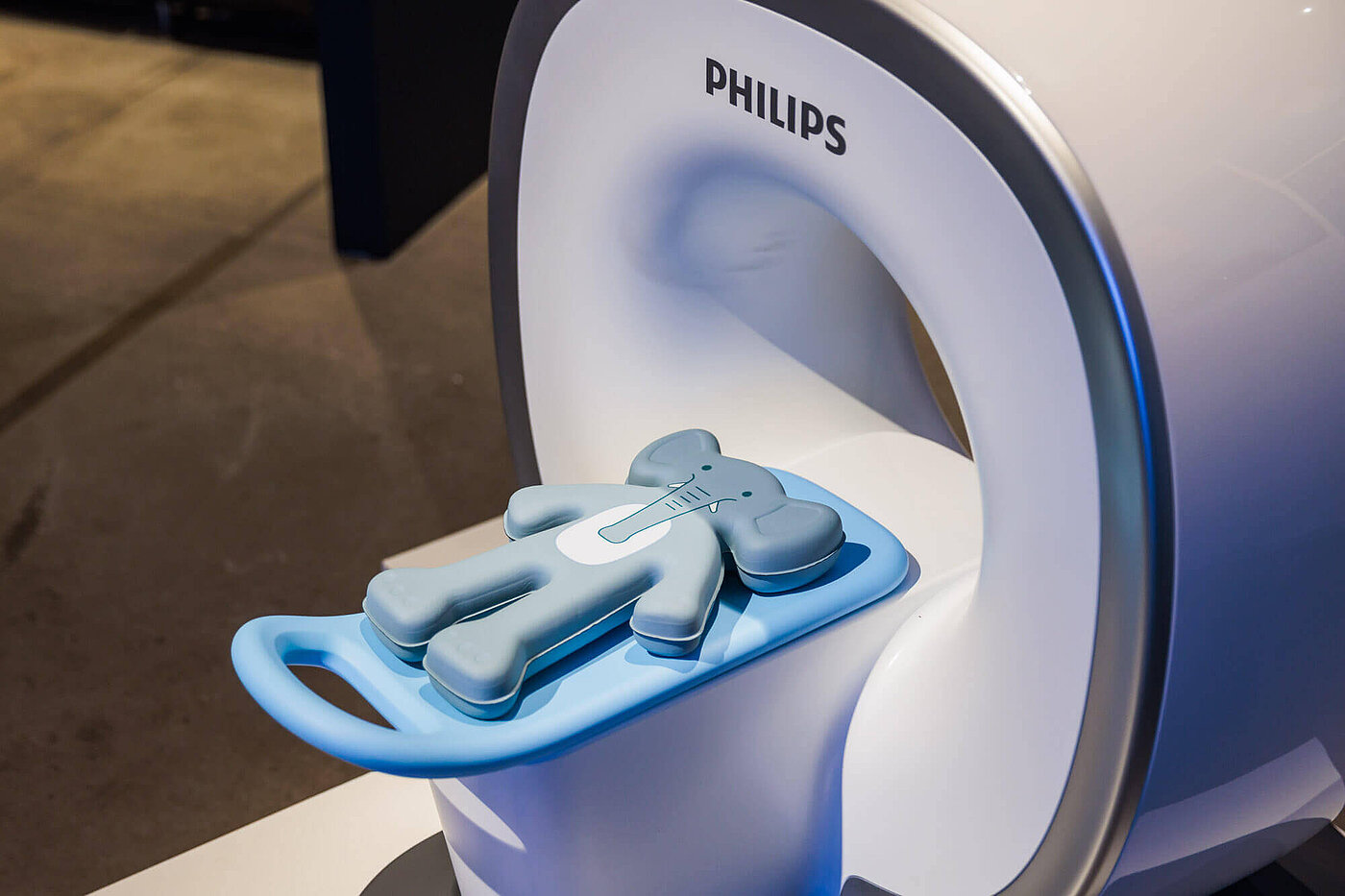 An MRI scan provides doctors with meaningful diagnostic images. For children, however, it can be a stressful experience: a large medical device in which the patient has to lie very still and the loud noises made by the strange machine can quickly seem frightening. For this reason, children are often given a short general anaesthetic for this examination. To reduce the use of anaesthesia and minimise the risk of trauma, Philips has developed a coaching programme. It received an award in the Red Dot Award: Product Design in 2022 and offers young patients aged 4 to 8 and their parents the opportunity to prepare for the examination in a playful way.