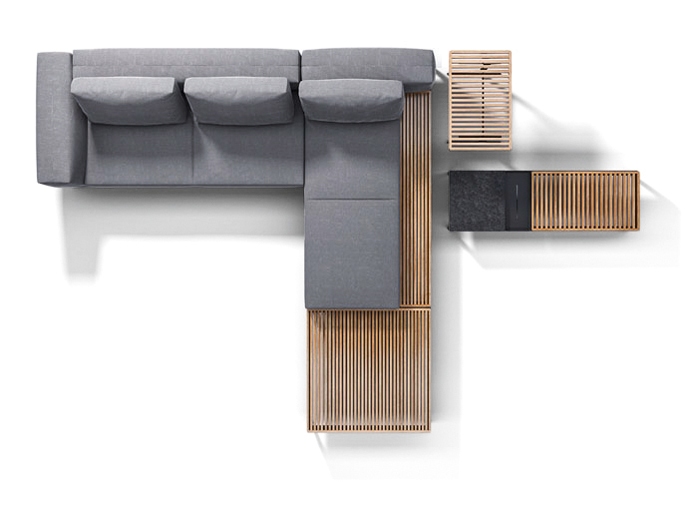 The modular outdoor sofa "Grid" transforms the private garden or terrace in a cozy summer lounge and guarantees good times in a distinctive atmosphere. The shapes of the various elements allow the combination of the seating units in multiple ways and different directions. The wooden table elements are adjustable in height. Their graphic lines harmoniously blend with the comfortable cushioning. “With its generous dimensions, the Grid outdoor sofa provides a high level of comfort. Its mix of materials underlines the elegant appeal”, praises the Red Dot jury.