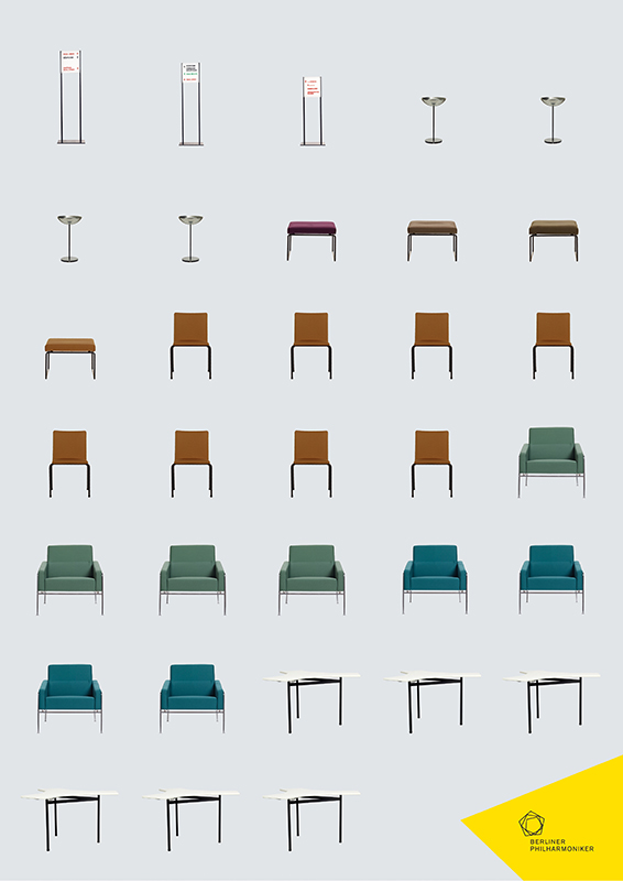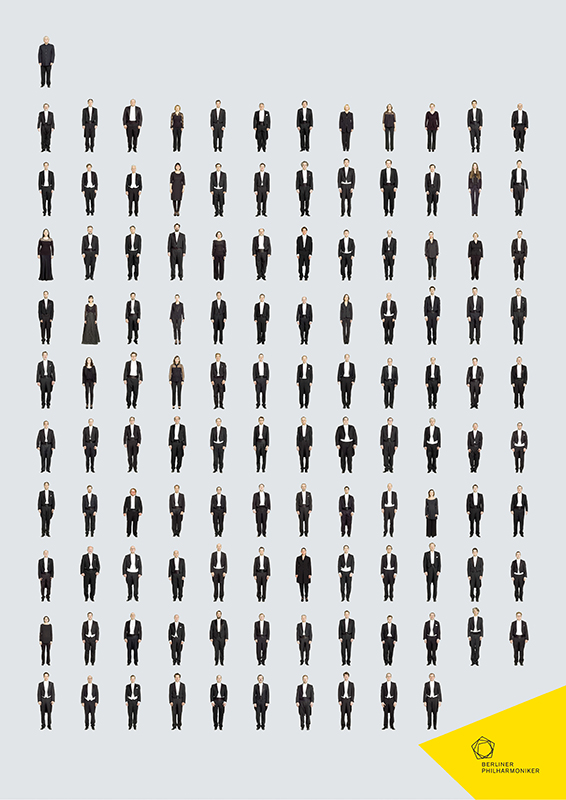 Traditionally every summer the symphony orchestras in Germany take a long holiday break – so do the Berliner Philharmoniker. The aim was to use this break for an eye-catching campaign that promotes the upcoming season. The campaign “Closed for Inventory" declared the summer break as a time when other businesses have to close for inventory. Therefore, the orchestra as well as the concert hall of the Berliner Philharmoniker – from the musicians, their instruments to objects like chairs and music stands – were photographed, put into a systematic order and arranged just like on an inventory list. As even the most mundane objects are thus pictured as works of art, the campaign underlined the outstanding character of the orchestra. The variety of posters drew a lot of attention in the city of Berlin and gave an ideal prelude for a successful concert season of the Berliner Philharmoniker.