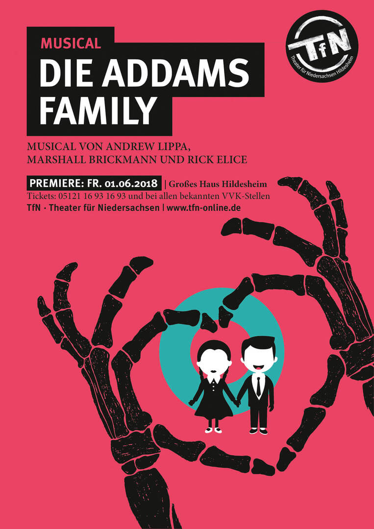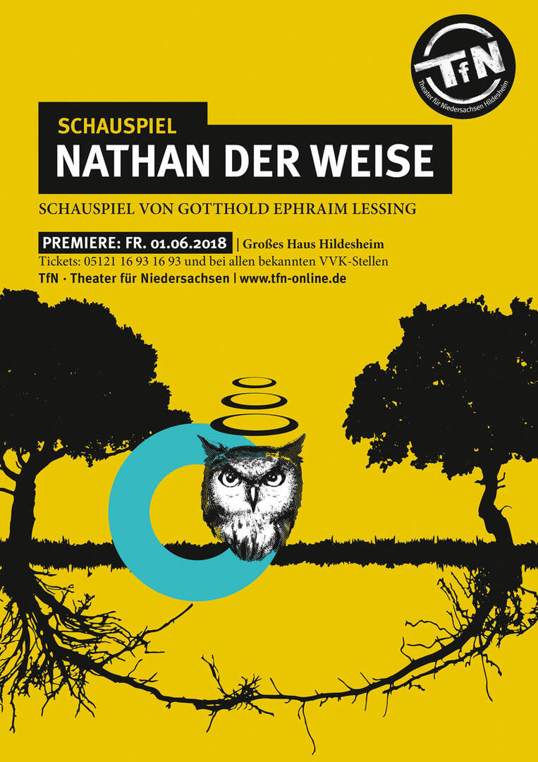 It was the concept of LOOK//one to communicate the broad offering of productions and genres with the poster series “TfN – Theater für Niedersachsen“ in a recognisable and eye-catching way. The logo of TfN, which is visualised in a circle, can be found on every poster with a spotlight function. Furthermore, the background is characterised by strong colours and illustrating elements, forming a collage, expressing the topics of the plays in a minimal but meaningful way.
