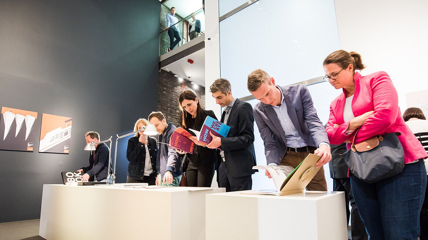 Subsequent to the welcome address, the guests visited the exhibition and had the opportunity to devote themselves to the exhibits in detail. Besides illustrations, poster campaigns and packaging, they were able to experience award-winning communication design at first hand: In contrast with other museums, touching and examining exhibits, such as annual reports or books, is explicitly allowed and requested in the Red Dot Design Museum. Moreover, digital communication projects from the field of “Film & Animation” are presented in a cinema lounge. Screens give the visitors an insight into very well-done game designs, interfaces, online presences and many more.