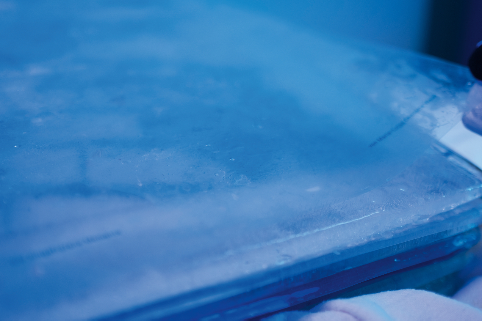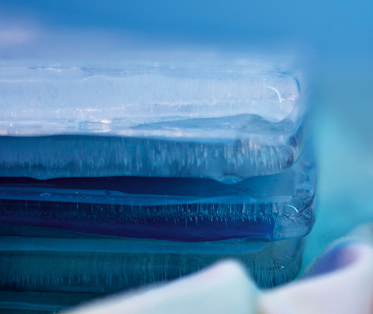 “Snow flurry” is the translation of the Finnish word “pyry”, which Marie-Luise Charlotte Weier chose as the title for her remarkable work. Indeed, one has to dress warmly when looking at her impressive photographs: frozen book pages allow the beauty of the Arctic Circle to shine through a thin layer of ice while symbolising its fragility. It takes effort to preserve this beauty – for the book, it is enough to maintain a permanent temperature of 0 degrees centigrade. Greater measures are required to protect the eternal ice.