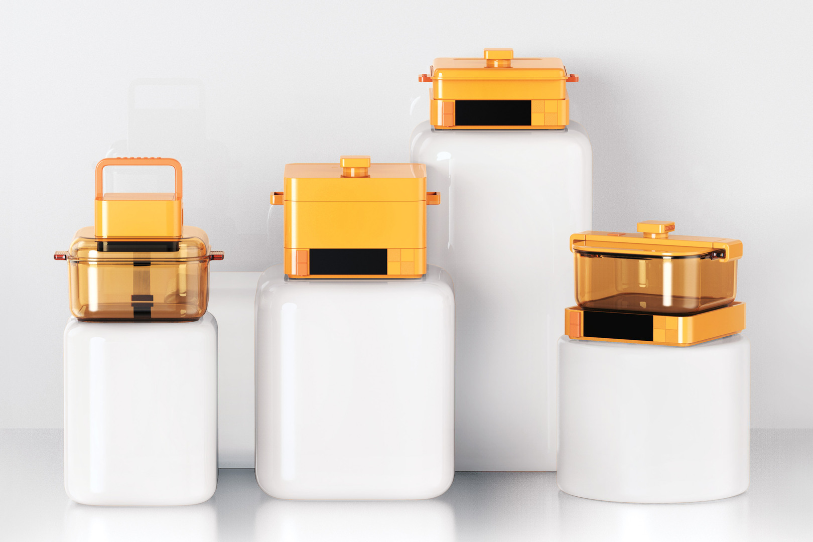 Simple geometrical elements combined with a warm modern style deviate from the utilitarian aesthetic of conventional cooking appliances. A flat design reduces the overall height of the cooker to accommodate young people’s cooking and hosting habits, allowing food to be served directly from the kitchen to the table in the cookware. Four independent interfaces automatically switch to a different cooking function based on the device cover that is placed on the main cooker body. Compared to existing products, the cooker’s larger diameter and shallower pot body is also intended to increase the heating area of the food and perform these multiple functions better.