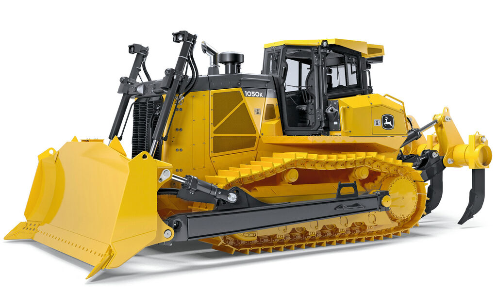 The 1050K Crawler is designed for heavy work such as in mining or road building. The “Deere PowerTech” engine provides the necessary force to push heavy loads of material. The appearance of the crawler is characterised by sharp contours and powerful proportions. The one-piece welded engine cowling resists torsion stress and offers high mechanical strength. At the same time, it allows good access to the main components for maintenance.