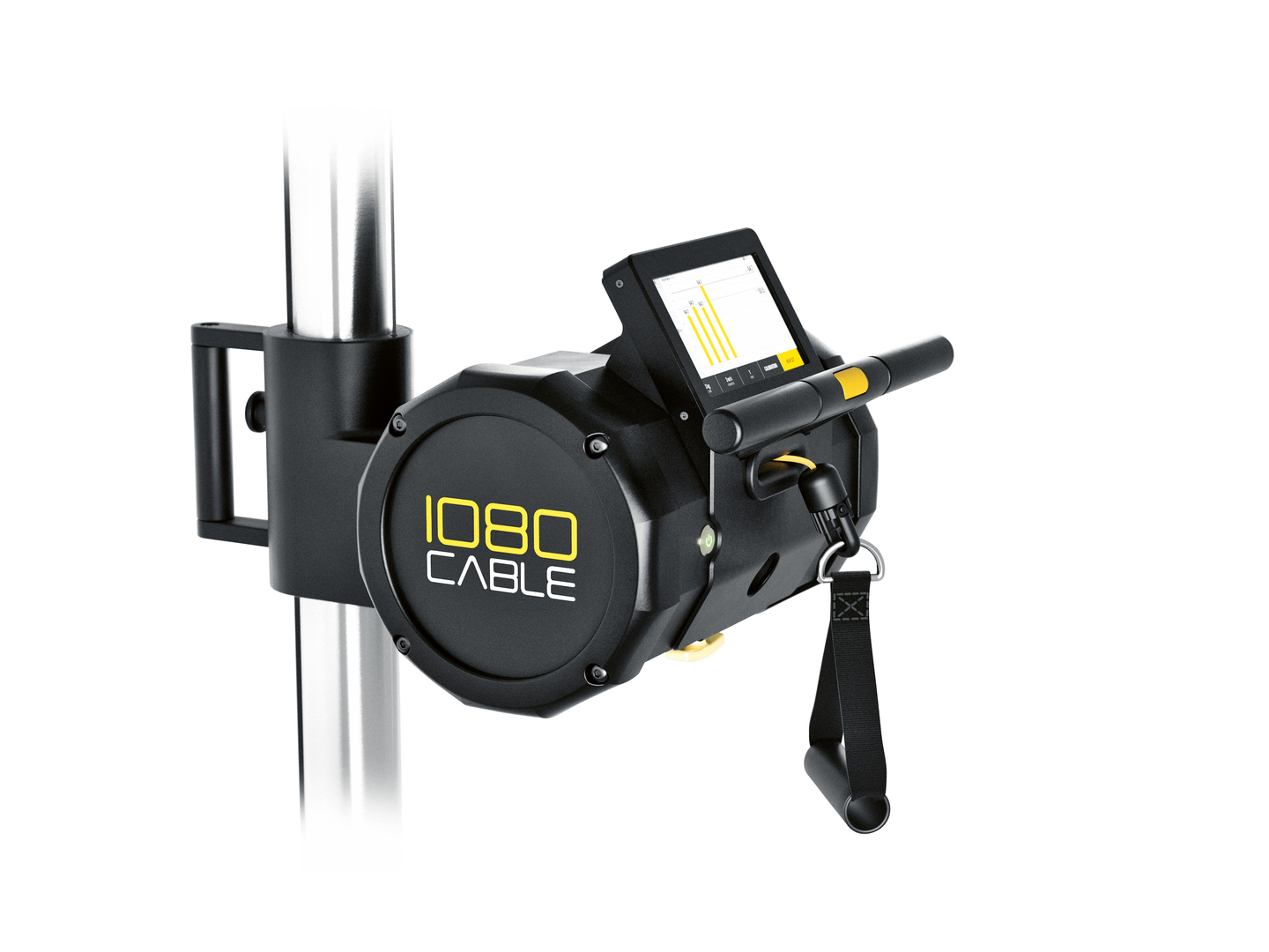 The cable training device 1080 Cable generates a variable resistance force up to 180 kg and enables effective strength training. It can be mounted space-savingly on walls or standard racks and is battery operated. The pulling force of the device comes from a computer-controlled electric motor instead of traditional weights, allowing training to be optimised by adjusting load, speed and inertia on the touchscreen. Thanks to an internet connection, stored cloud data is then available for analysis by trainers or rehabilitation specialists.