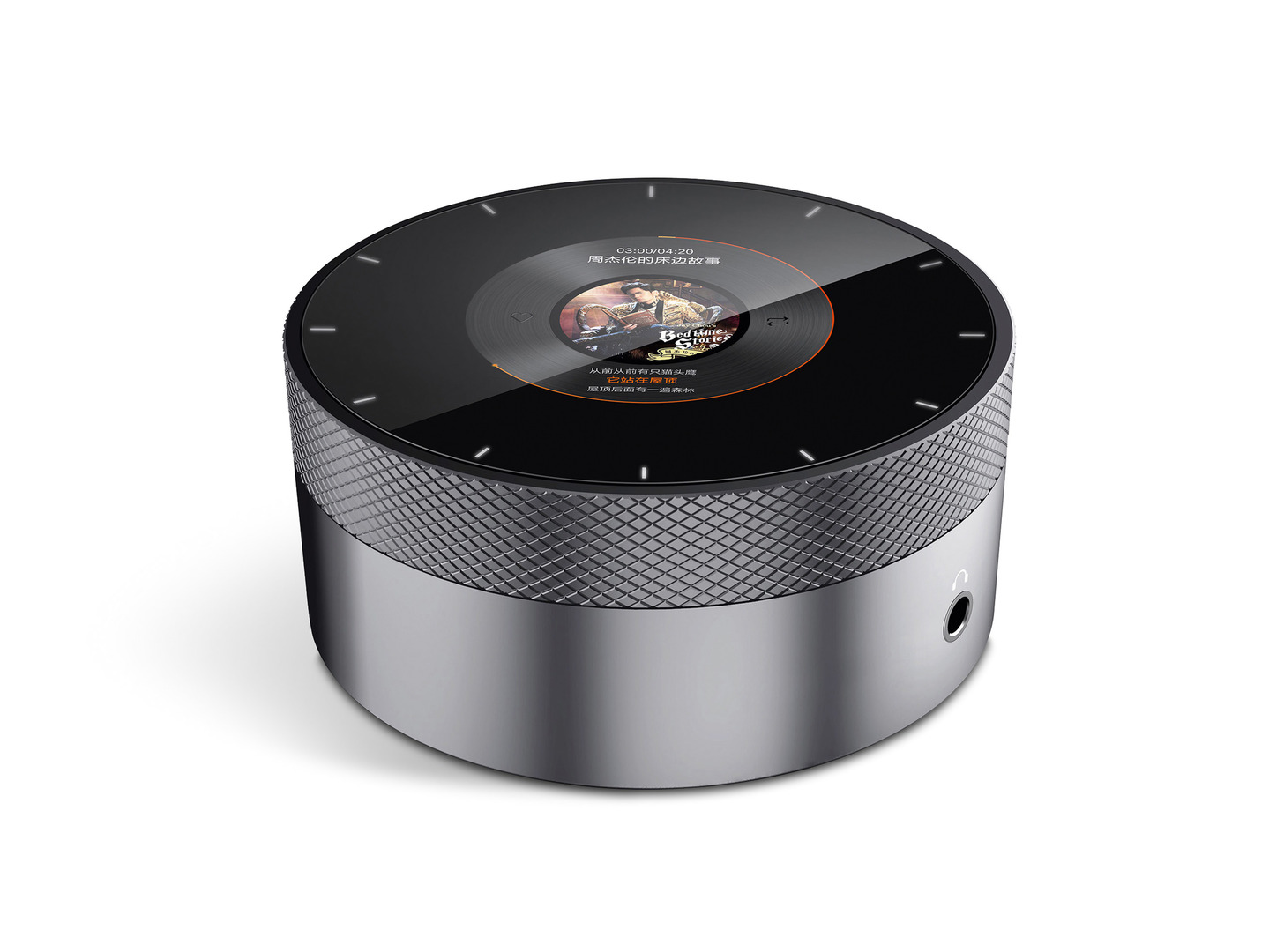 The 1More audio player connects to playback devices via Wi-Fi. Its design was inspired by a vinyl record; accordingly, the player presents itself as simple, functional and compact. The housing is made of titanium-plated aluminium, which creates an appealing contrast to the glossy black upper side. The player is operated by rotating or pressing the metal ring. The diamond-cut surface highlights the ring’s function as control element and provides a better grip.