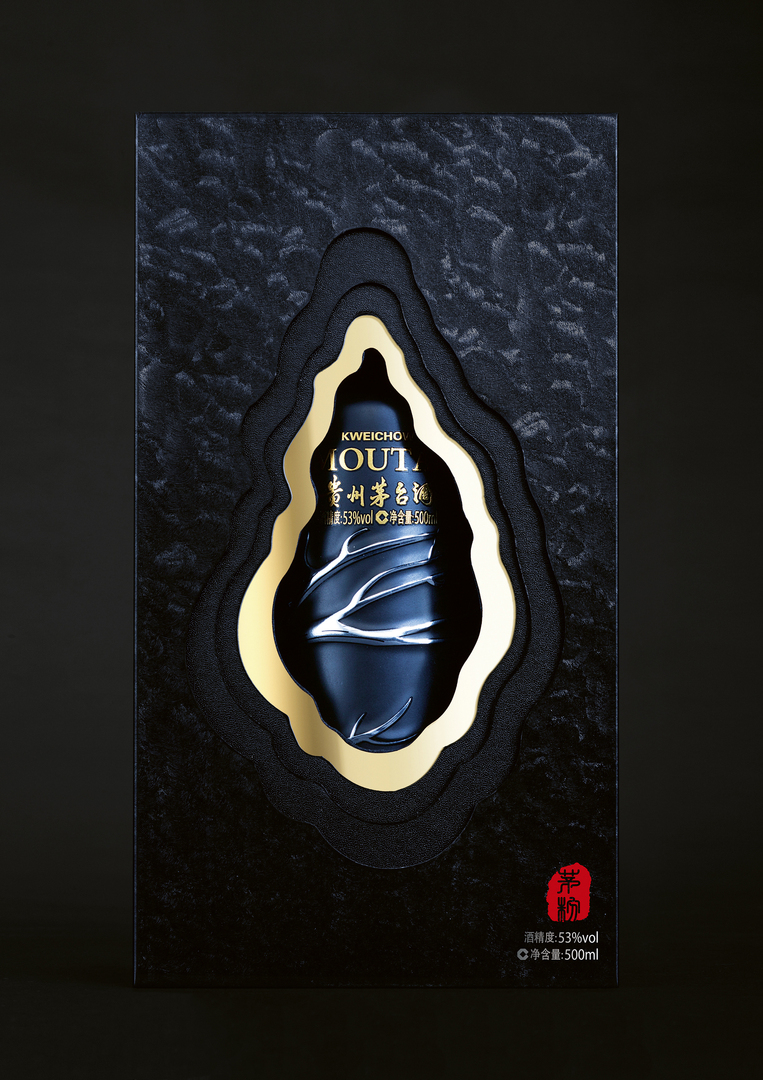 “Constant dripping wears the stone” is the motto for the packaging design for Kweichow Maotai spirits. It aims to express that, thanks to the perseverance of millions of drops of wine, “the truth of the bottle” is revealed – a truth based on old vines which, among other things, represent the passing of time itself. The outer packaging, which looks like metal, thus features an organically shaped, multi-layered opening, as if made by constant dripping, offering a view of the bottle. Both the bottle and the outer packaging are deep black with luxurious golden accents, and environmentally friendly in production.
