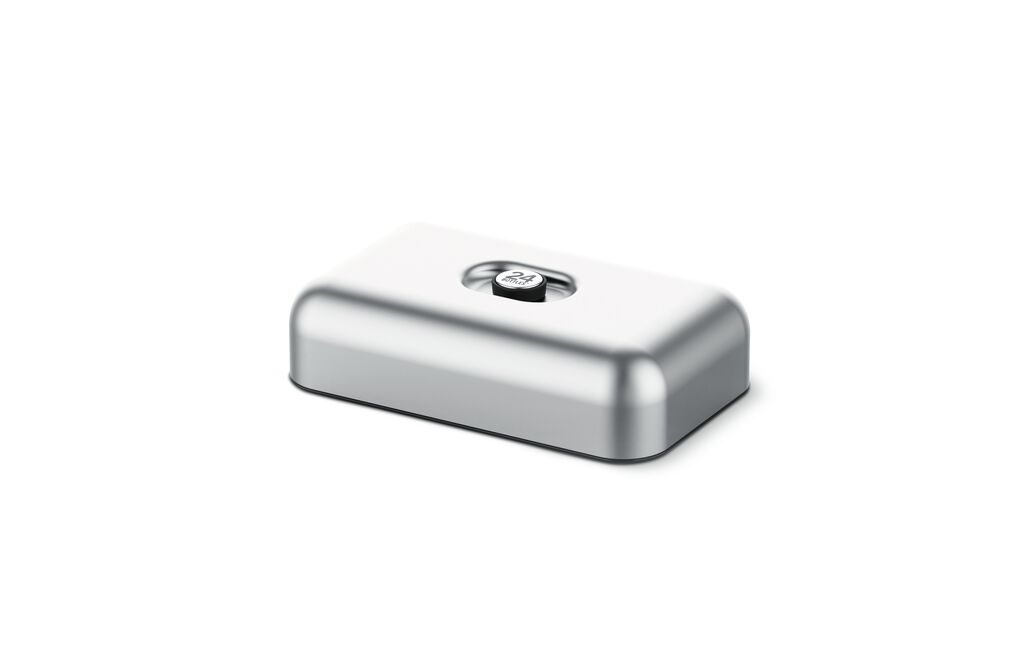 The 24Bottles Lunch Box is a product solution for transporting food, cutlery, etc. in different compartments. This ensemble includes a 750 ml bowl with a leak-proof lid and a 40 ml glass container for dressings and sauces. A spoon, fork and knife are contained in a silicone holder in an upper compartment that also provides space for napkins, sliced bread or small snacks. This compact container is available in appealing colours and patterns.