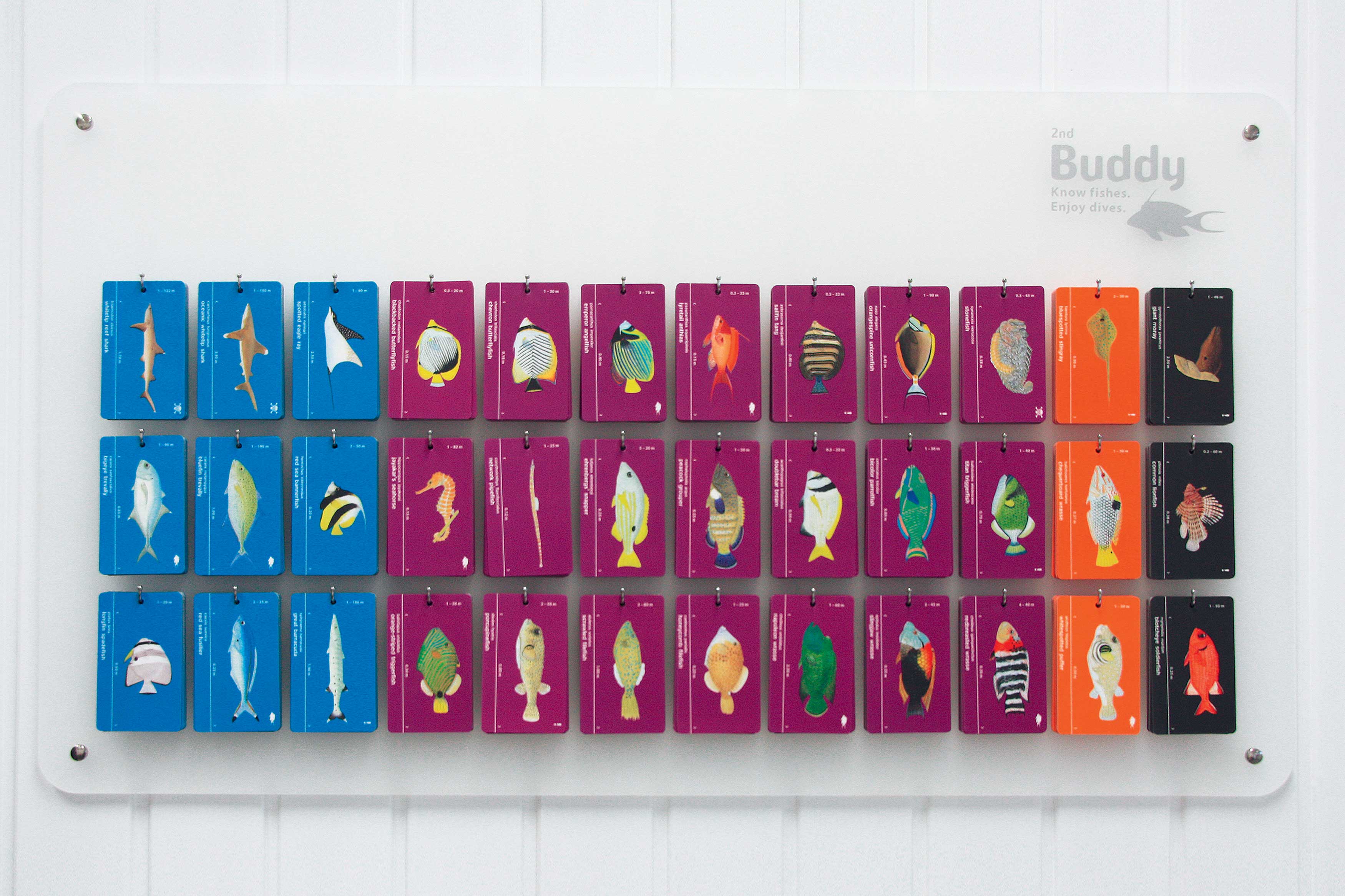 2nd Buddy was developed for scuba divers with Open Water Diver licenses to use in Egypt’s Red Sea region. It helps divers to distinguish different fish species and ensures a more conscious way of diving by pointing out potential dangers caused by certain sea animals. From a modular wall system with 36 different fish identification cards, a customised set can be threaded on a reclosable beaded chain, which can be attached with a carabiner to the diving gear. The accompanying app is an ideal way of identifying fish using their specific characteristics. Moreover, a neoprene packaging for transportation or to use it as a gift package was designed.