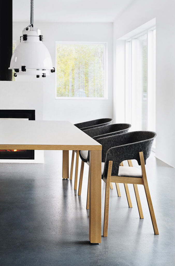 Njord skilfully combines opposites – straight and sweeping lines, a soft and at the same time clearly contoured appearance and an unusual mix of materials: wood and polyester felt.