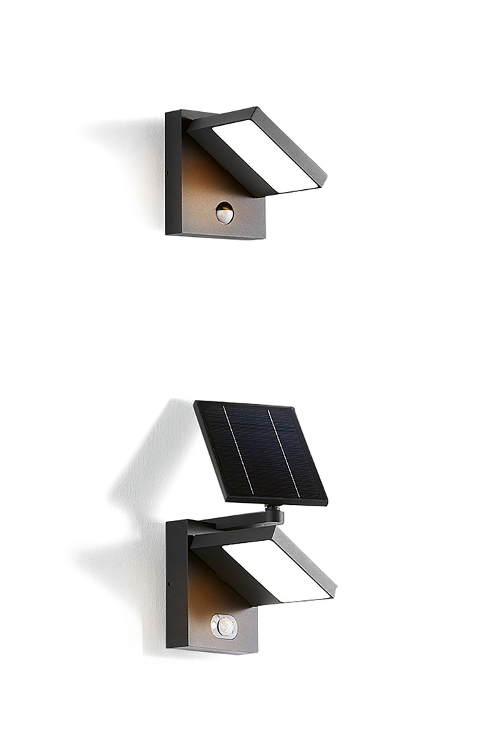 The weatherproof wall and bollard luminaires of the 321-MODULAR outdoor lamp series follow a design approach of clearly defined structures and lines. The powder-coated aluminium body in graphite grey, for example, exudes a minimalist look. The slim, swivelling lamp head comes with high-quality LEDs, providing a pleasant and sufficiently bright light. All luminaires in the series can optionally be equipped with a motion detector, a movable solar module or both.