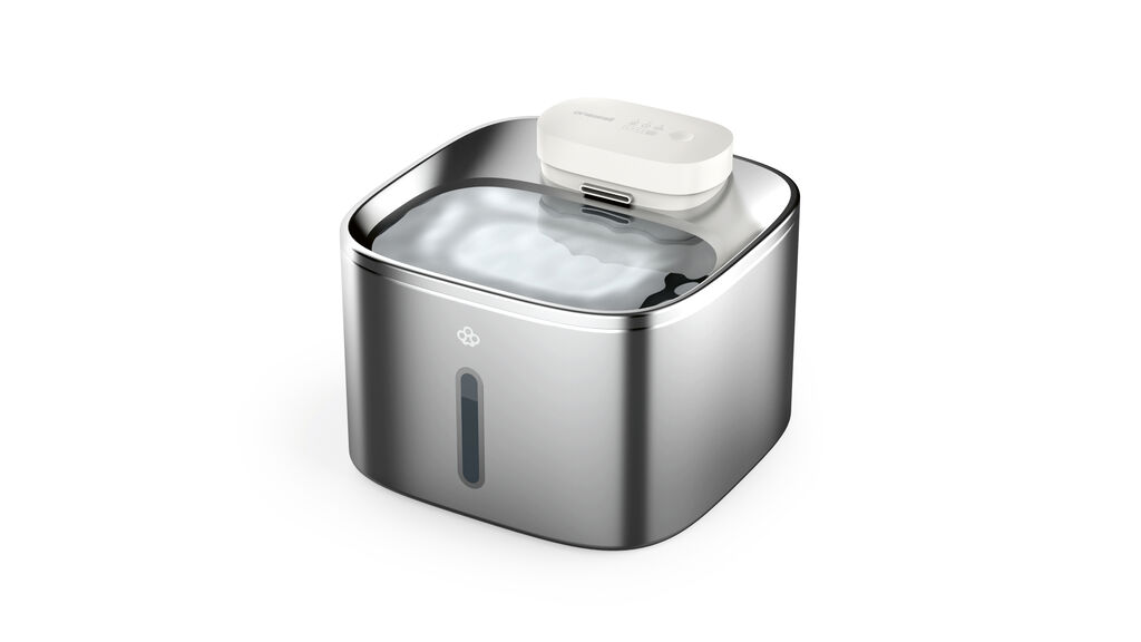 Thanks to its minimalist design and well-thought-out details for hygiene and safety, this water fountain enriches everyday life with pets.