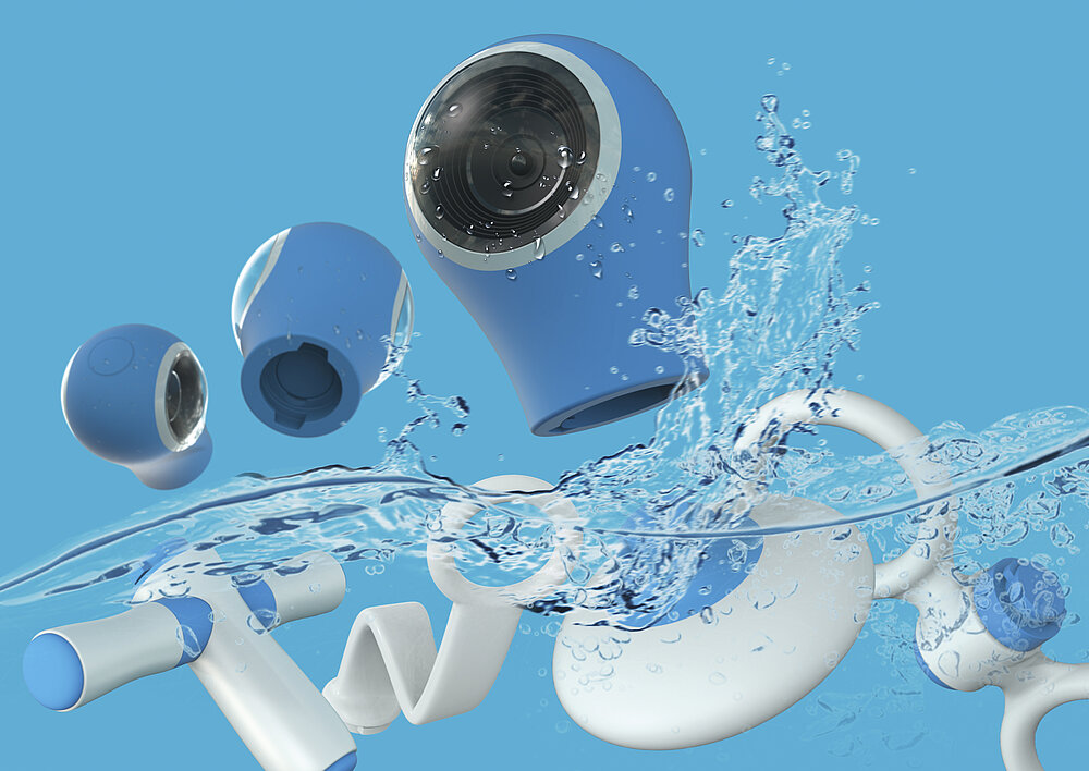 Children love to play in the water because it gives them joy and takes them away from the mundaneness of everyday life. With 360° Underwater Toy Action Cam, children can now bring a camera into the water and freely photograph in 360°what they see while swimming. Children can replay and share the video with family and friends while showing off their recording skills with VR devices. This camera works both in and out of the water. Considering the environment of water and the behaviour of children, it is equipped with four different accessories to help children handle and control the camera easily and safely. Red Dot Award: Design Concept | Concept | Childhood