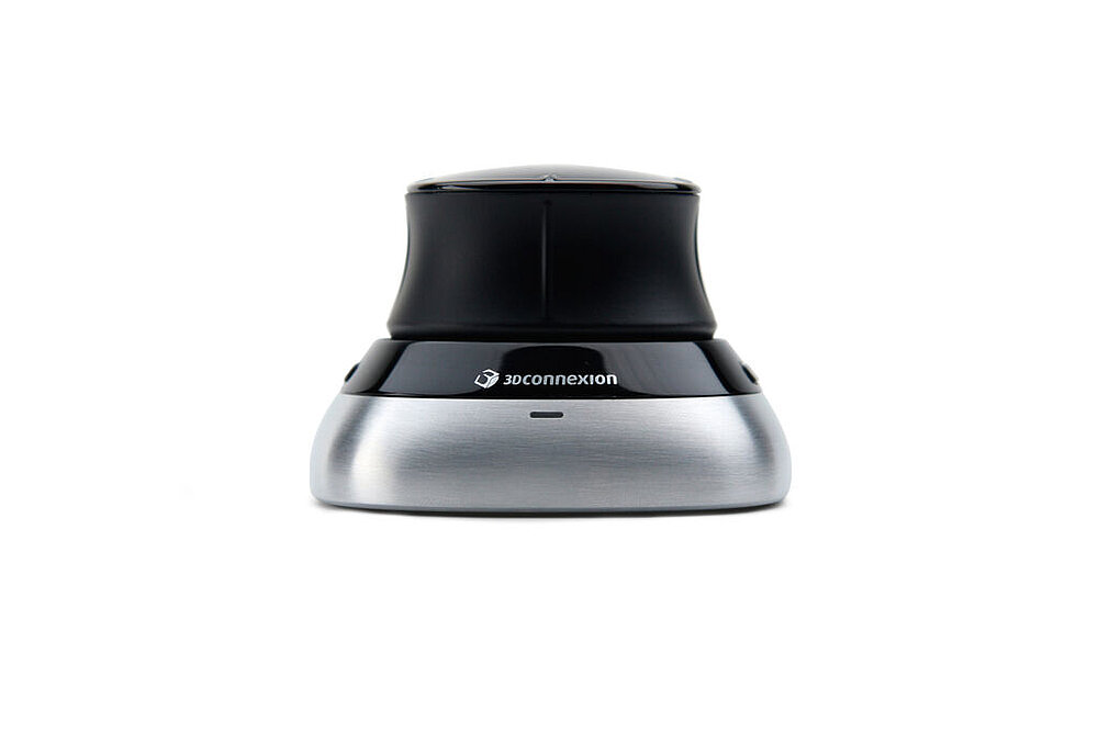 The SpaceMouse displays a balanced design and, with its brushed stainless steel base, renders a high-quality, reliable impression.