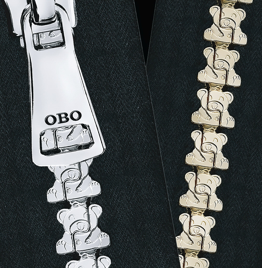 This patented, 3D zipper with an unconventional design is highly flexible. Its zipper teeth come in a variety of shapes and types of metal finishing. On children’s clothing, for example, they can resemble little bears when closed. The zipper teeth can be customised, so that the respective logo can be used or any desired shape can be made to fit the latest product collection.