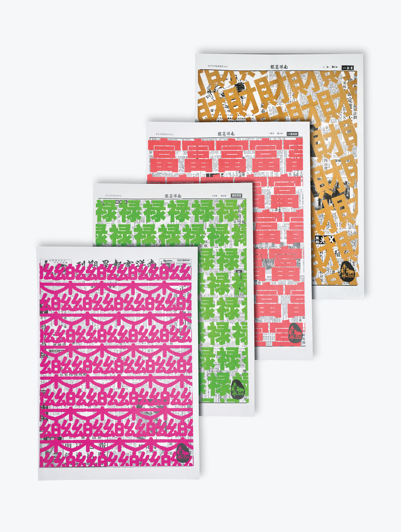 A design that integrates the typographic elements used in a 1950s Chinese newspaper from Singapore lends this wrapping paper its distinctive appearance. By taking a typographic approach to overlaying large, bright Chinese words of auspicious meaning on old newspapers – like “Fu” for luck, “Lu” for status or “Le” for happiness – this 50s news-gift paper reflects a mixture of traditional and contemporary features. It offers an alternative for people who are looking for unique, well-designed wrapping options. The paper can be used as a gift, a keepsake, a special giveaway or even as a poster.