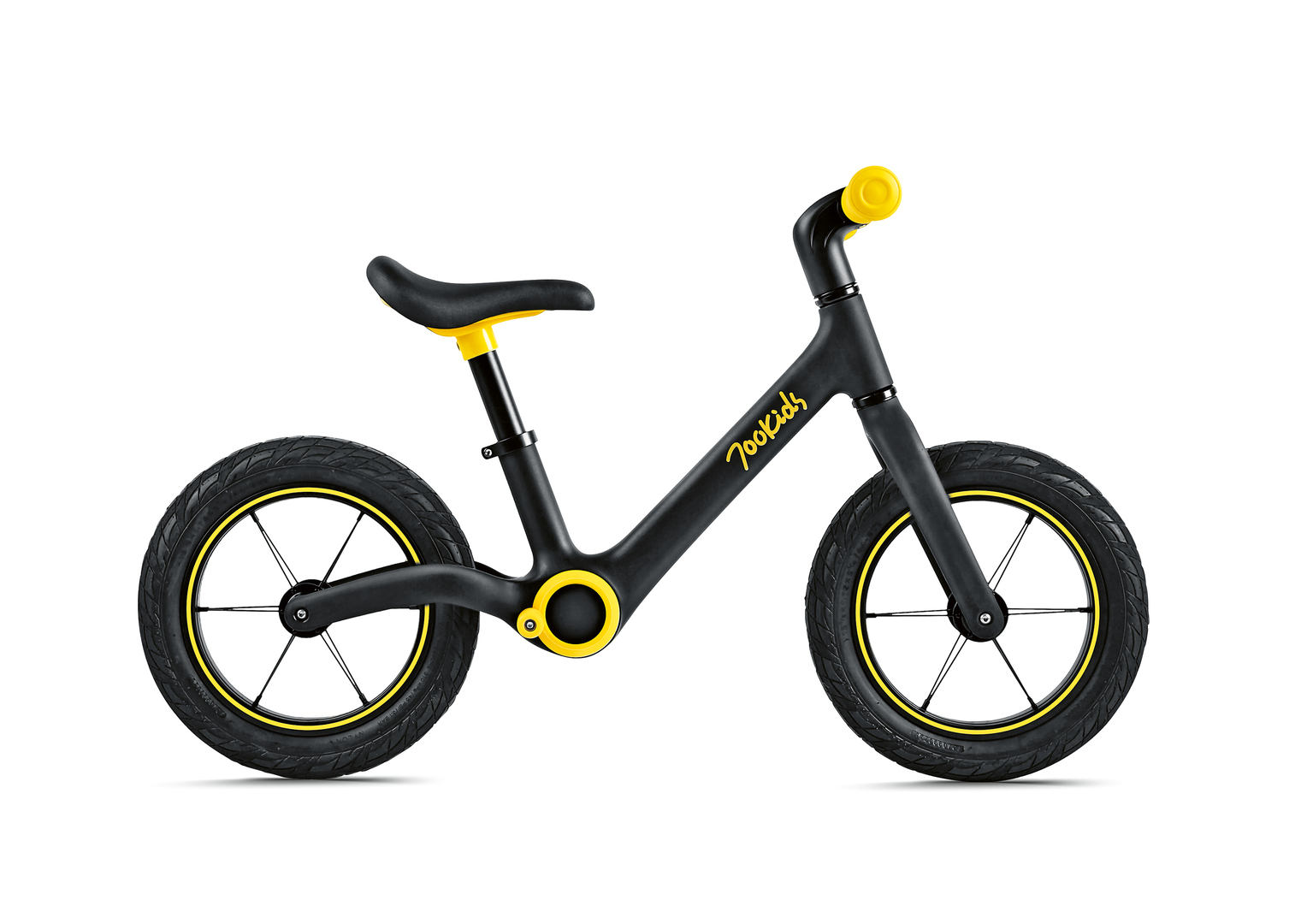 The frame of the 700kids Balance Bike is formed using GAIM technology (Gas-Assisted Injection Molding), resulting in a light-weight bike. Nevertheless, the surface is sturdy and stable. Footrests in the shape of pedals have been added to enable children to rest their feet while sliding. Together with the round shapes of the bicycle frame, the dynamic colour scheme in black with yellow accents creates an attractive appearance.