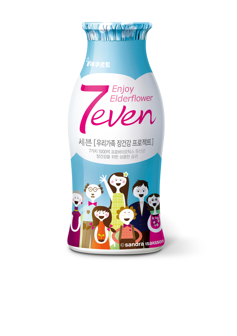 The yoghurt drink 7even helps to promote digestive health through seven different kinds of lactic acid bacteria. The packaging design focuses on illustrations that depict a family of seven. Colourful, emotionally appealing imagery conveys health and happiness. Seasonally changing packaging design additionally fosters buying incentive throughout the year. Besides Christmas, the packaging design picks up on changing topics, including baseball and seasons like summer and autumn. Each design features an independent colour spectrum, while the consistent bottle form and the logo band guarantee product recognition.