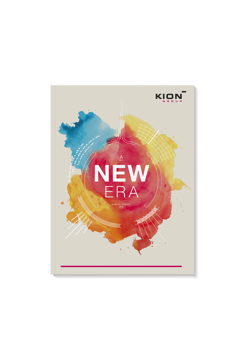 The KION Group’s annual report concept stands out due to the way in which it links its print and online version. A separate brochure, in the form of a leporello, is inserted into the report. It introduces readers to its topics and piques their curiosity for the online report. The printed version has another surprise in store. When opened, the pages turn into a large poster which illustrates the range of the company’s material handling solutions by showing an idealised warehouse. The title of the report, “Eine neue Ära” (A New Era), was derived from the PR communication of previous months.